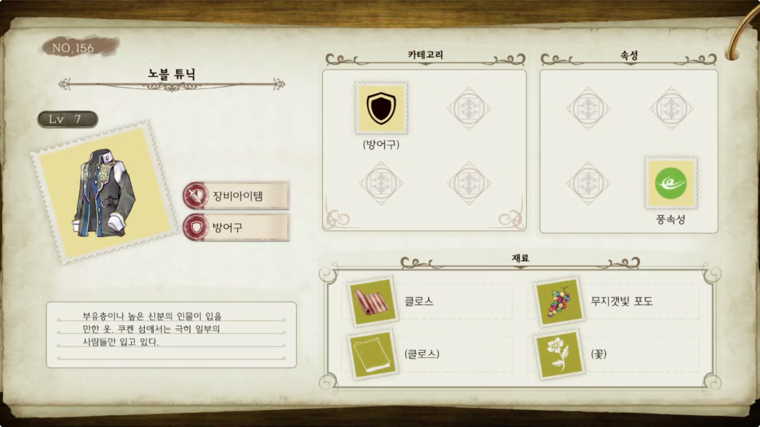 라이자의 아틀리에 - 아이템 도감 NO.156 노블 튜닉