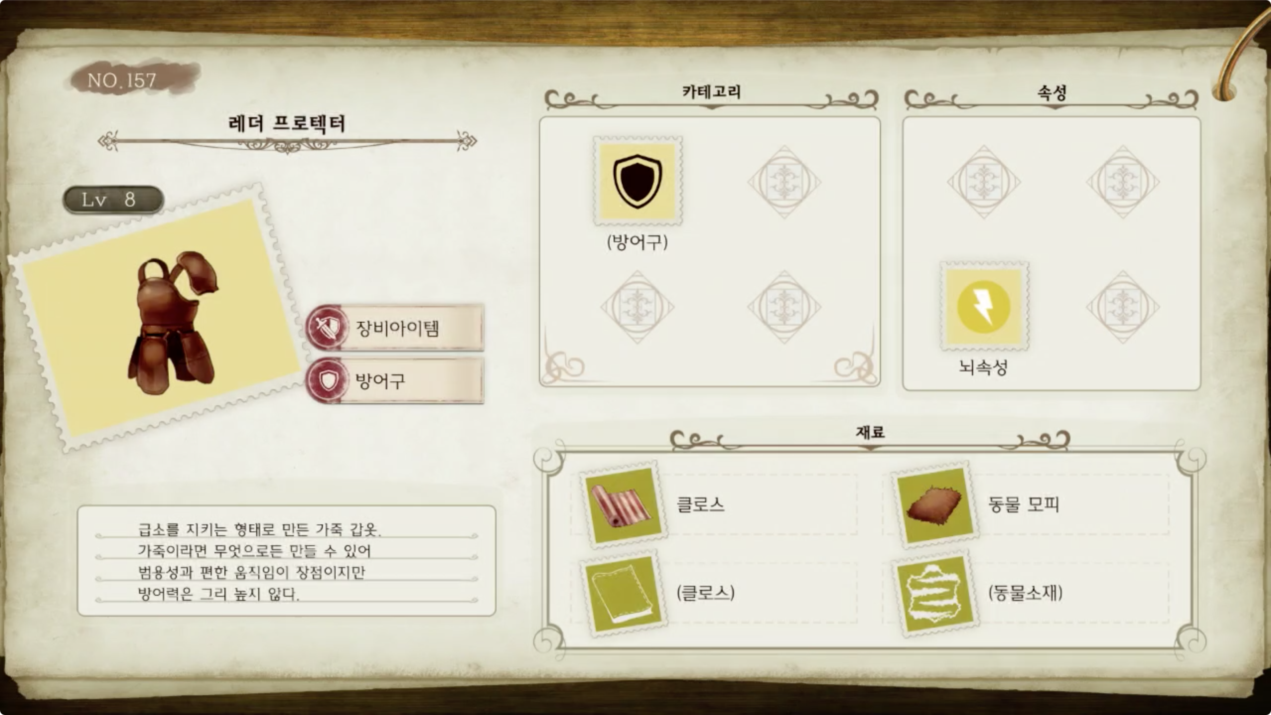 라이자의 아틀리에 - 아이템 도감 NO.157 레더 프로텍터