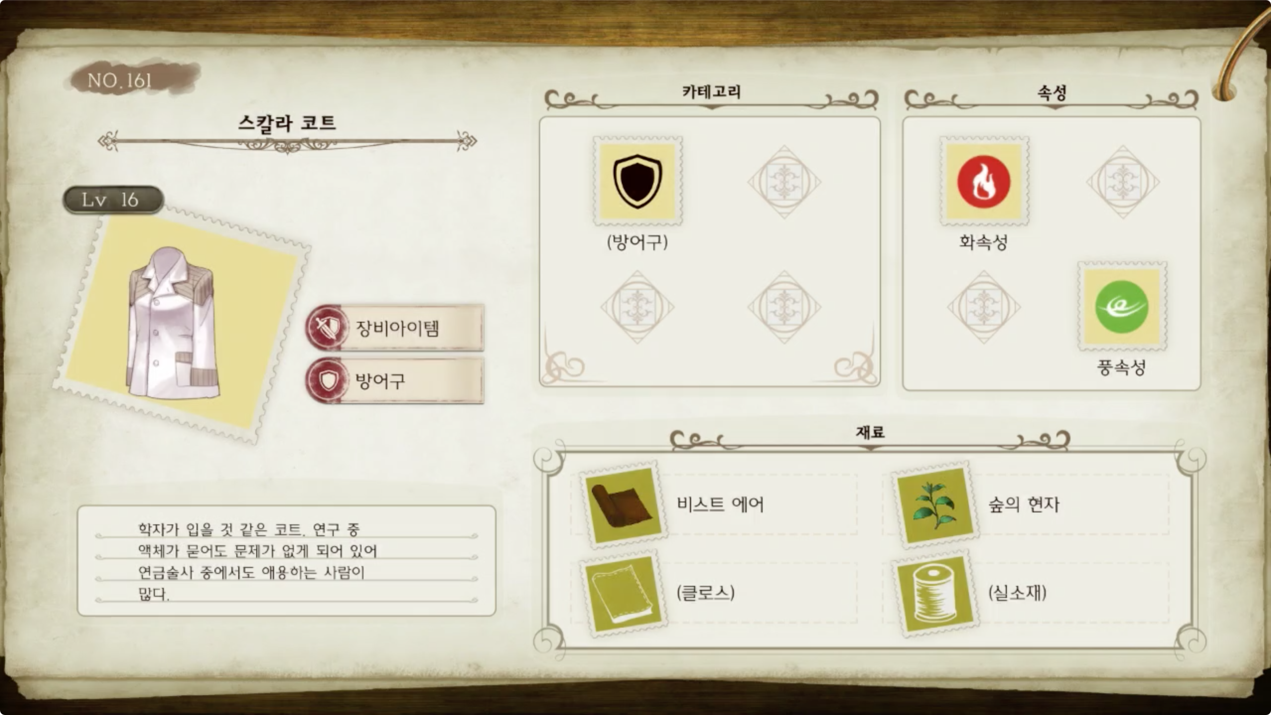 라이자의 아틀리에 - 아이템 도감 NO.161 스칼라 코트