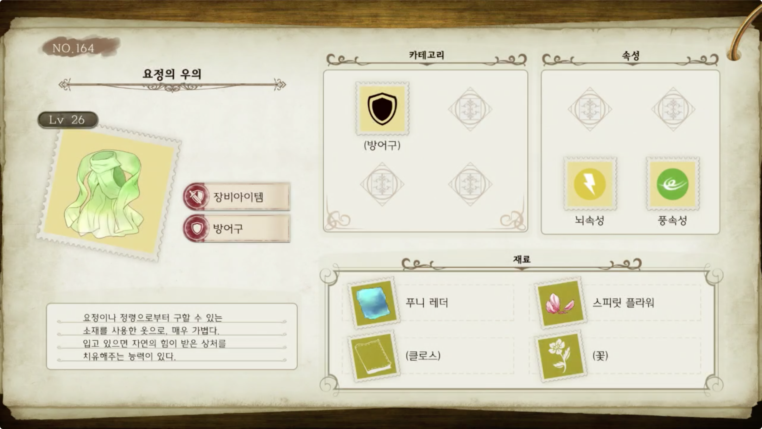 라이자의 아틀리에 - 아이템 도감 NO.164 요정의 우의