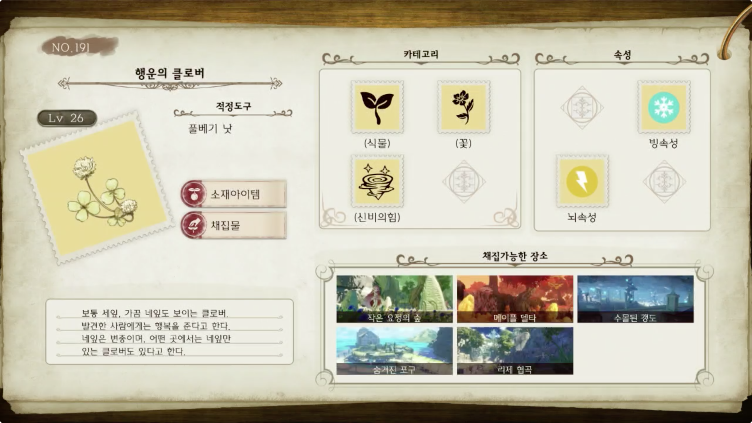 라이자의 아틀리에 - 아이템 도감 NO.191 행운의 클로버