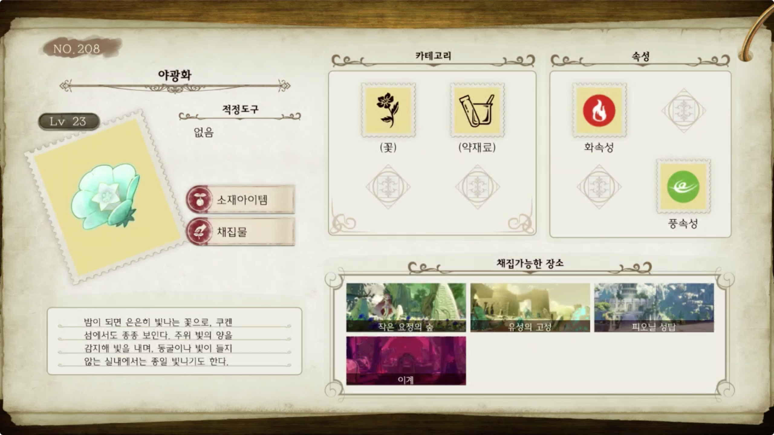 라이자의 아틀리에 - 아이템 도감 NO.208 야광화