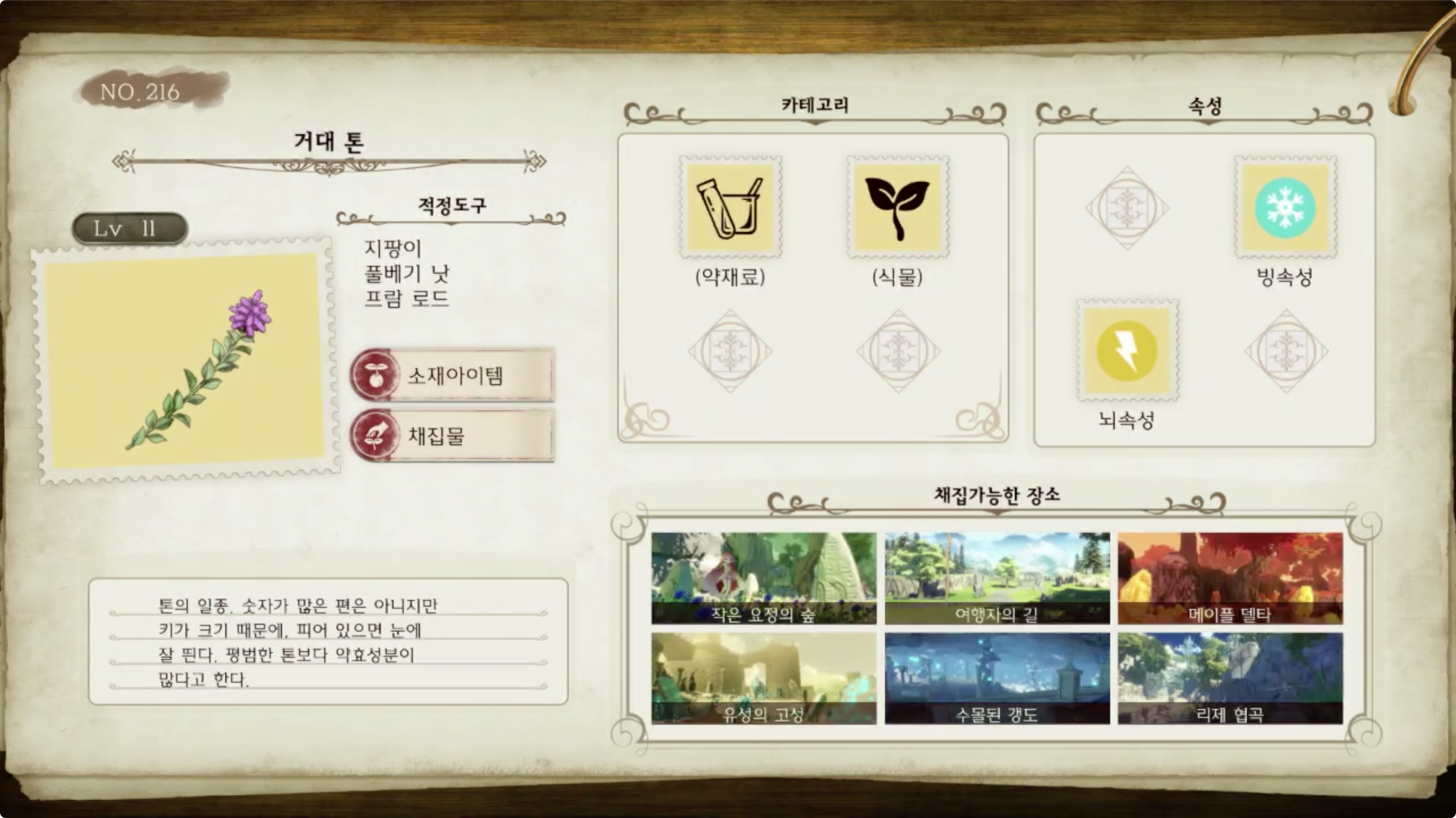 라이자의 아틀리에 - 아이템 도감 NO.216 거대 톤