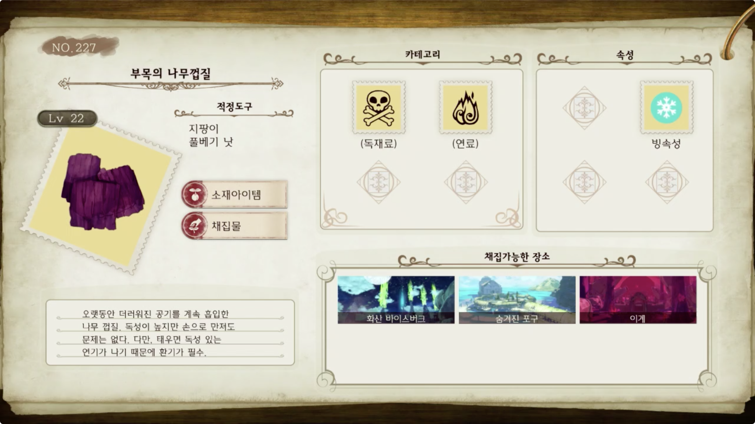 라이자의 아틀리에 - 아이템 도감 NO.227 부목의 나무껍질