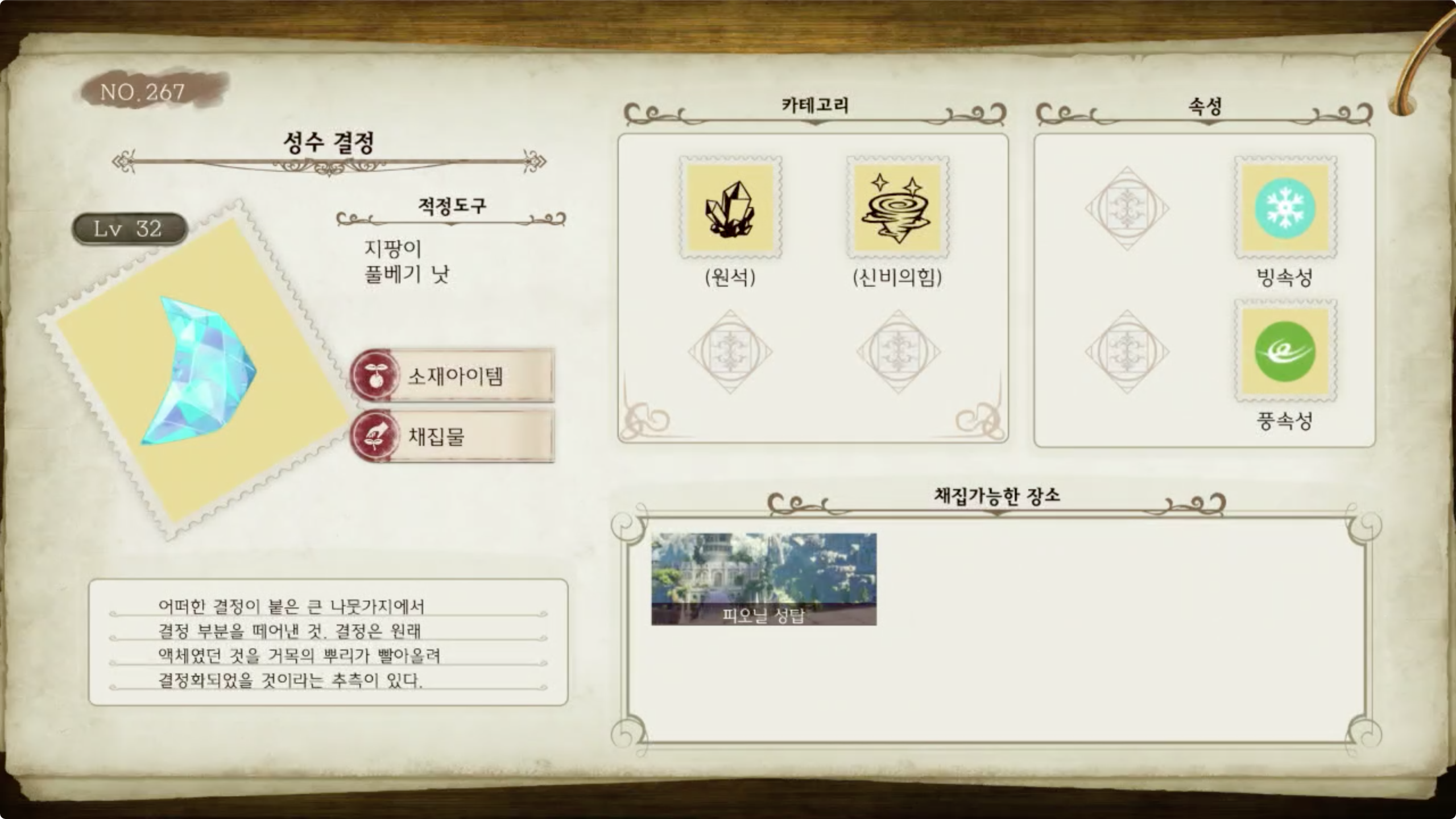 라이자의 아틀리에 - 아이템 도감 NO.267 성수 결정