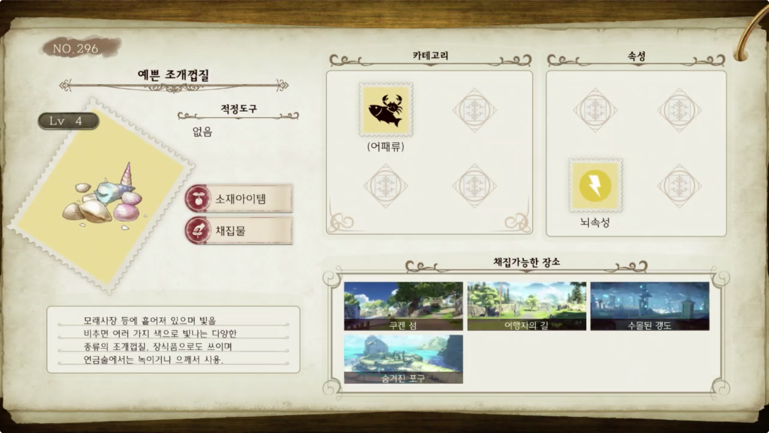 라이자의 아틀리에 - 아이템 도감 NO.296 예쁜 조개껍질