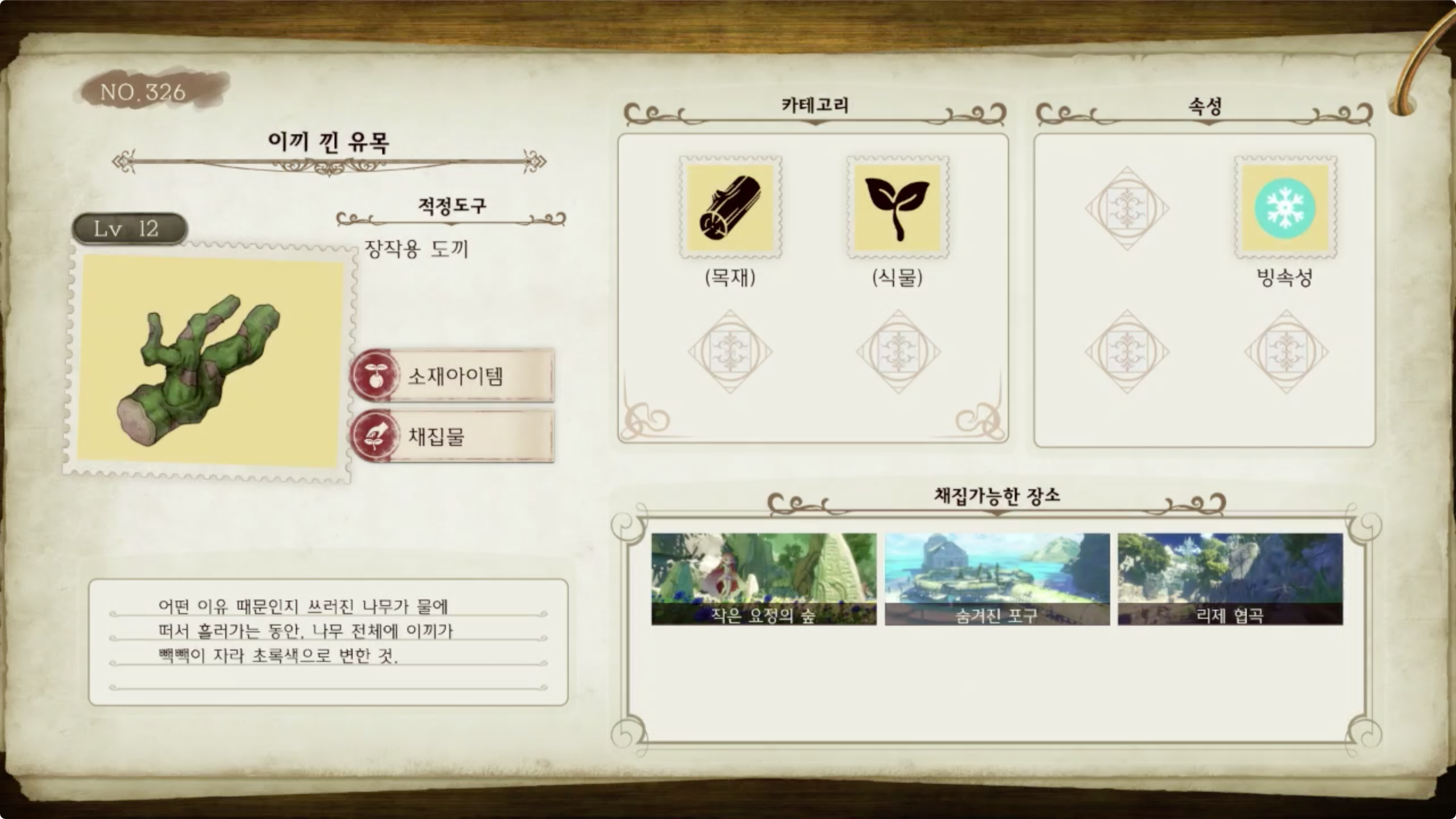 라이자의 아틀리에 - 아이템 도감 NO.326 이끼 낀 유목