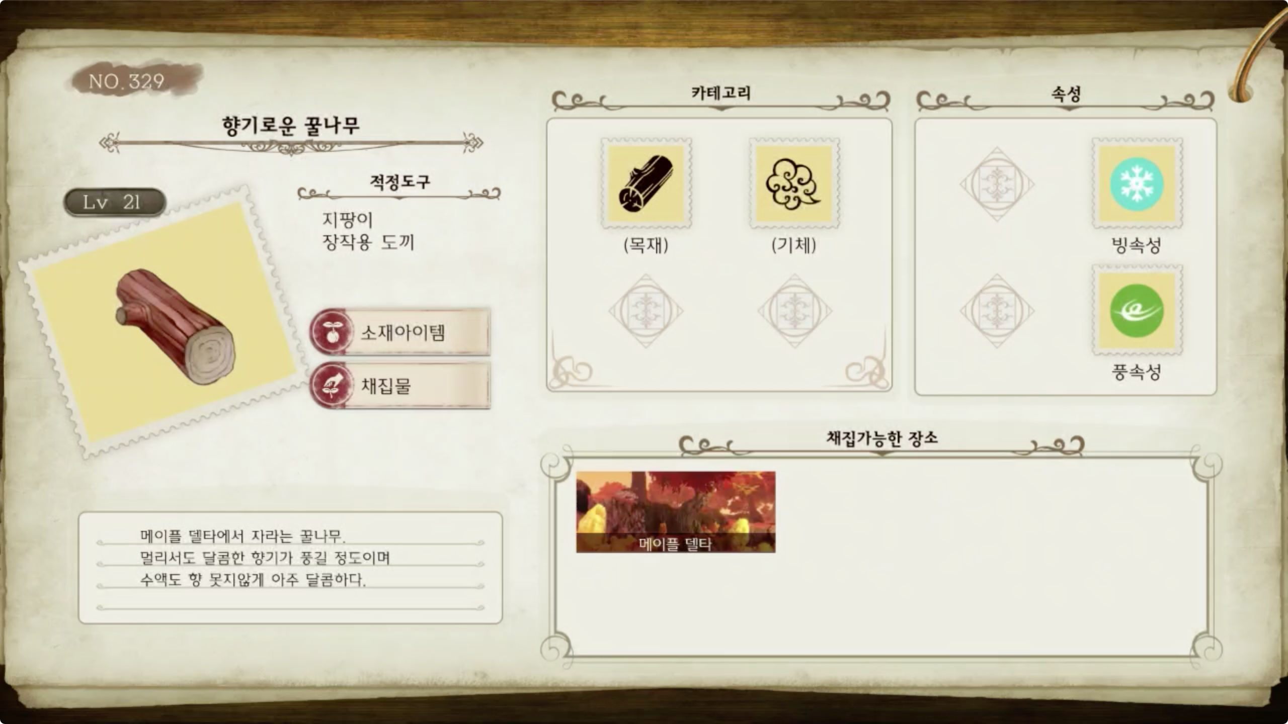 라이자의 아틀리에 - 아이템 도감 NO.329 향기로운 꿀나무