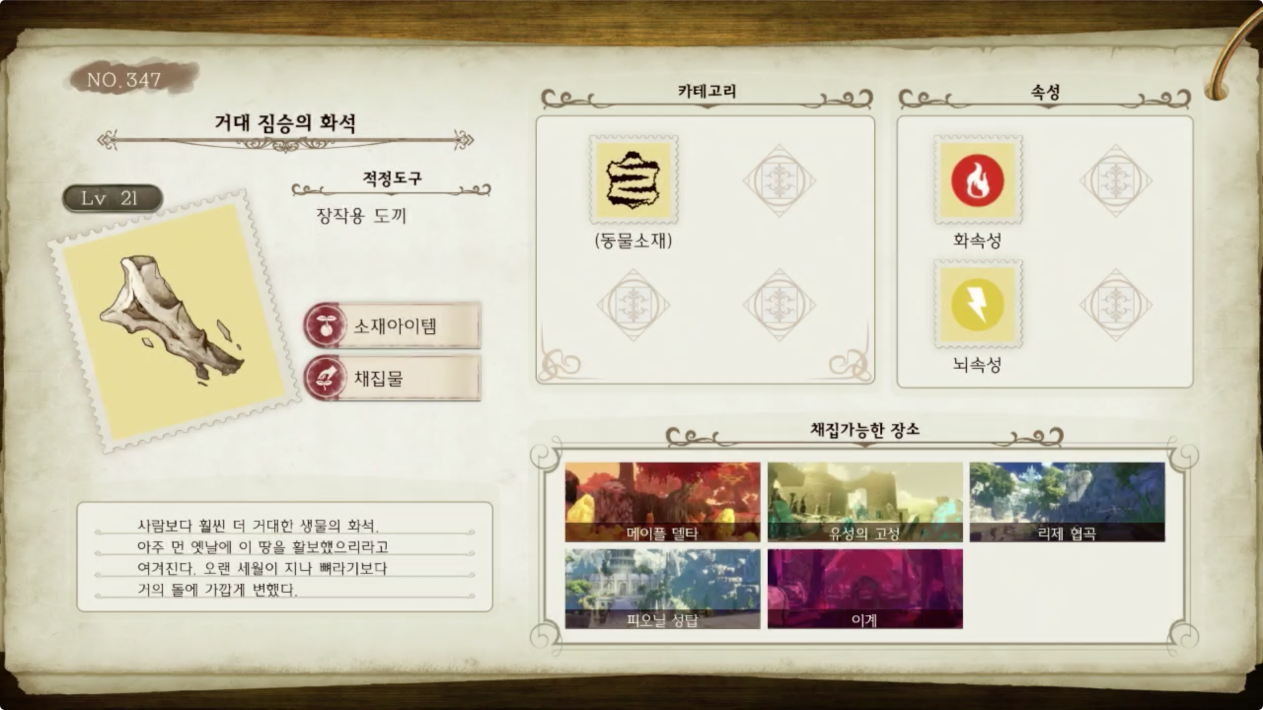 라이자의 아틀리에 - 아이템 도감 NO.347 거대 짐승의 화석
