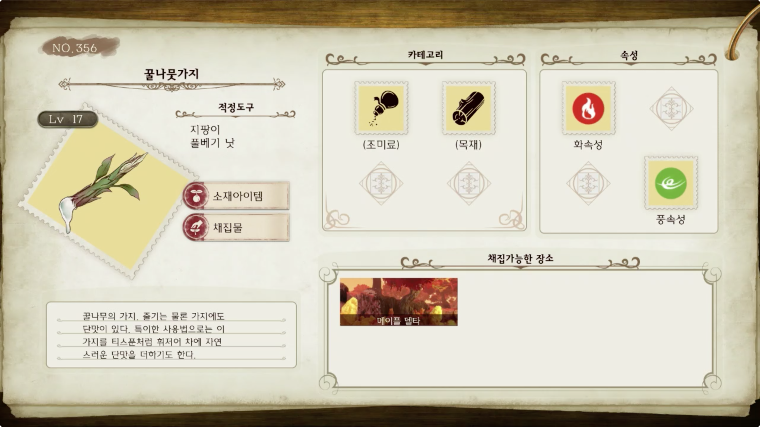 라이자의 아틀리에 - 아이템 도감 NO.356 꿀나뭇가지