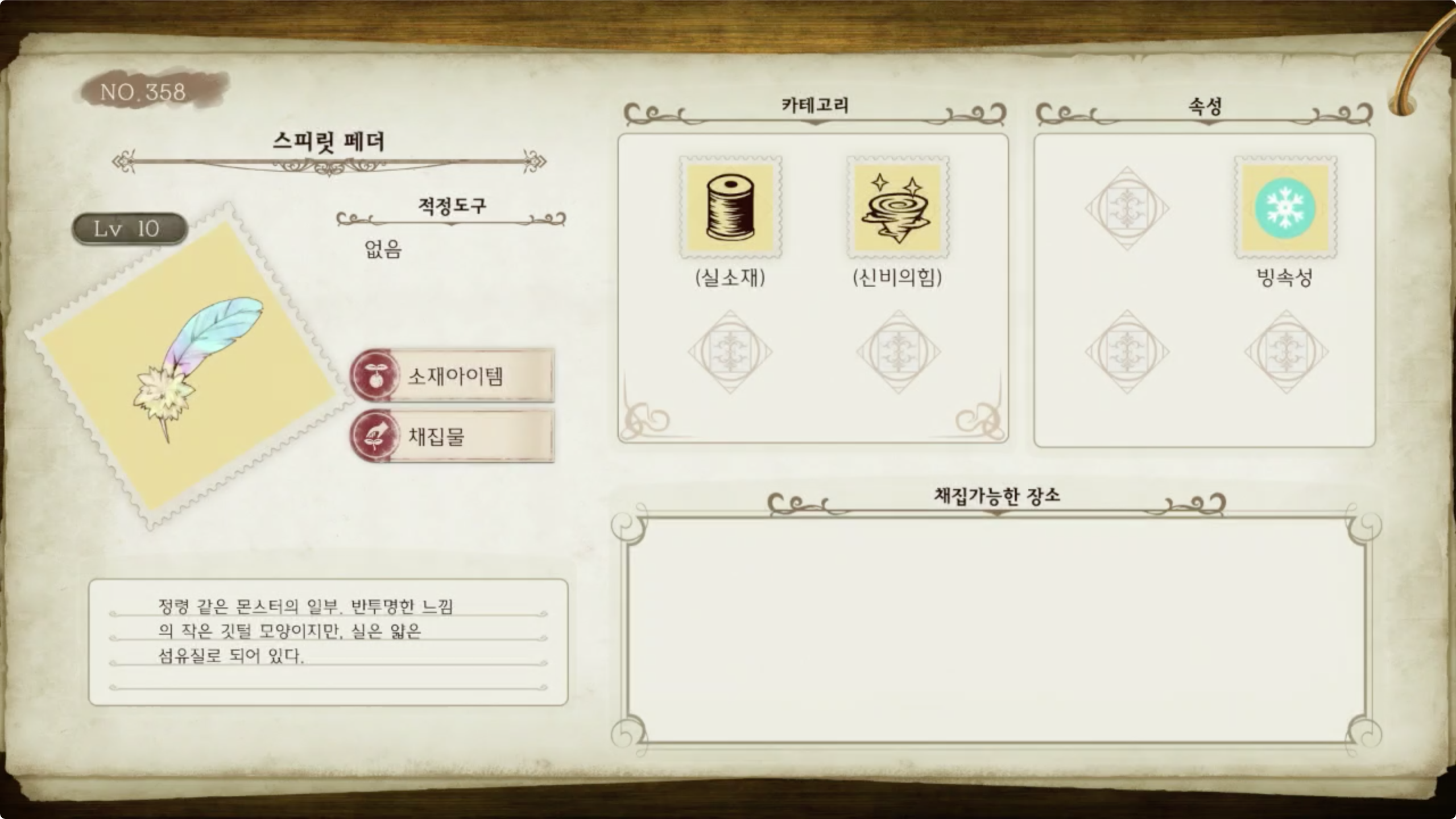 라이자의 아틀리에 - 아이템 도감 NO.358 스피릿 페더
