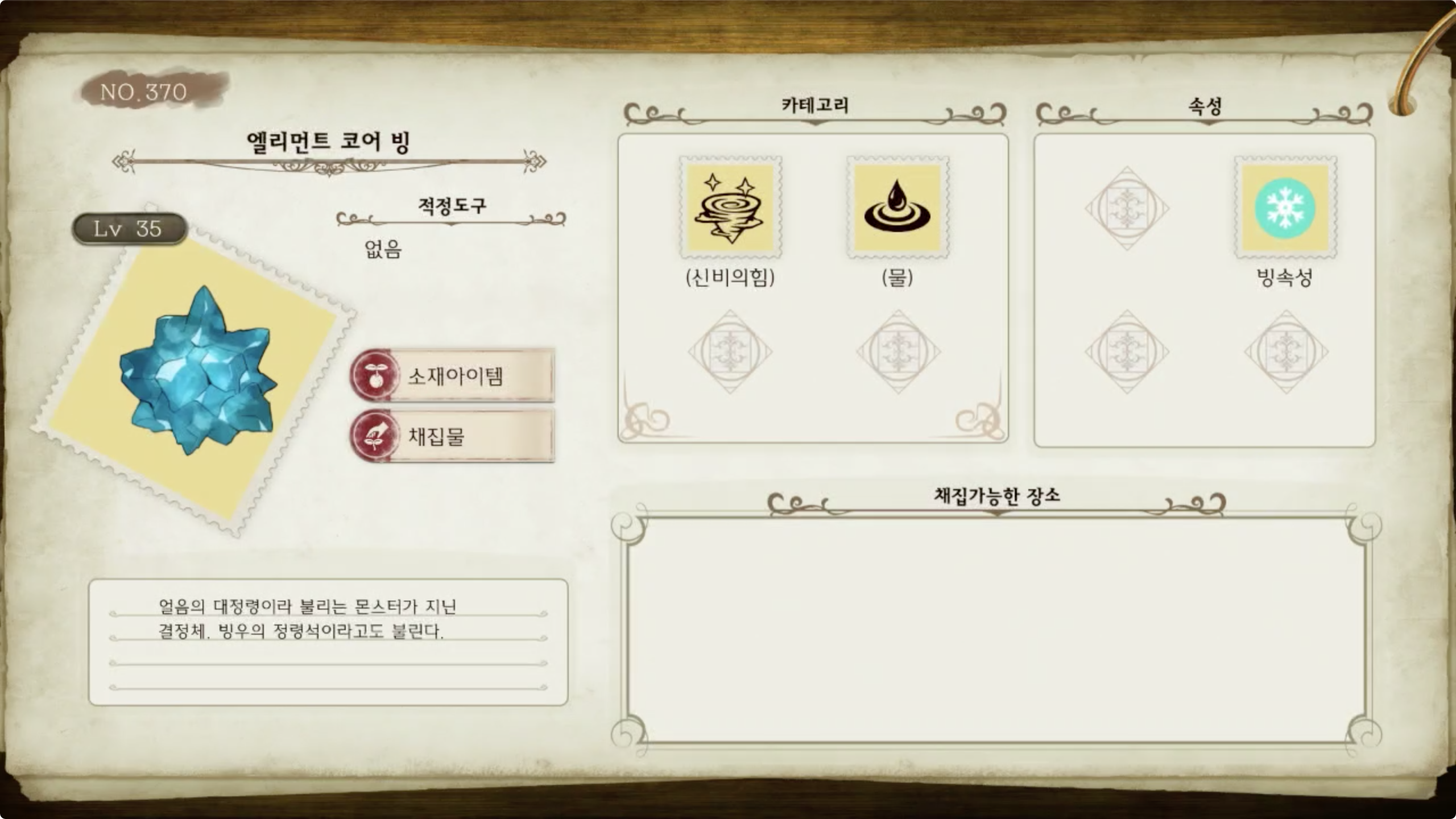 라이자의 아틀리에 - 아이템 도감 NO.370 엘리먼트 코어 빙