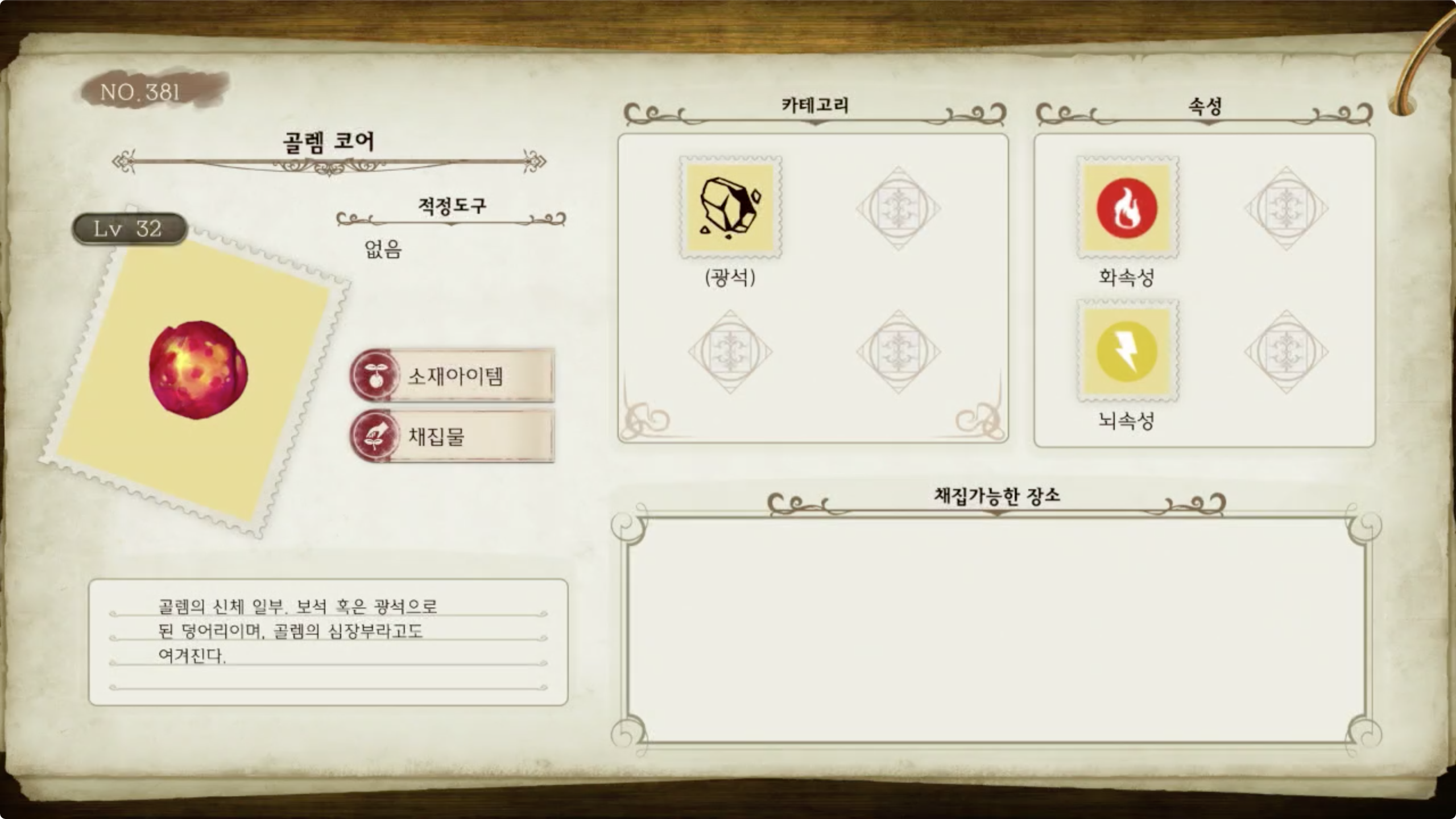 라이자의 아틀리에 - 아이템 도감 NO.381 골렘 코어