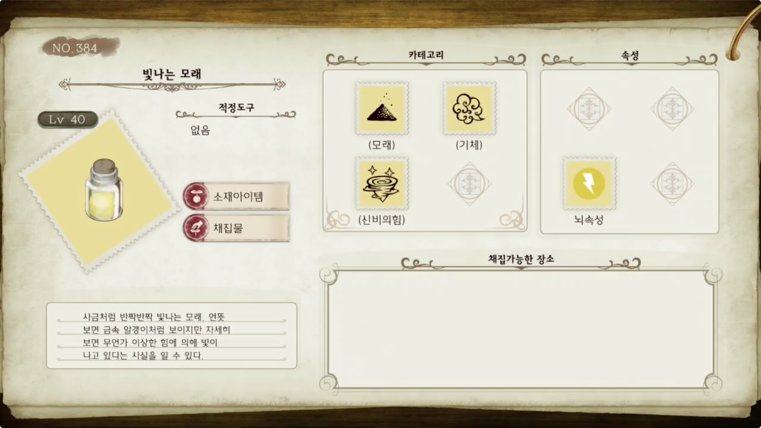 라이자의 아틀리에 - 아이템 도감 NO.384 빛나는 모래