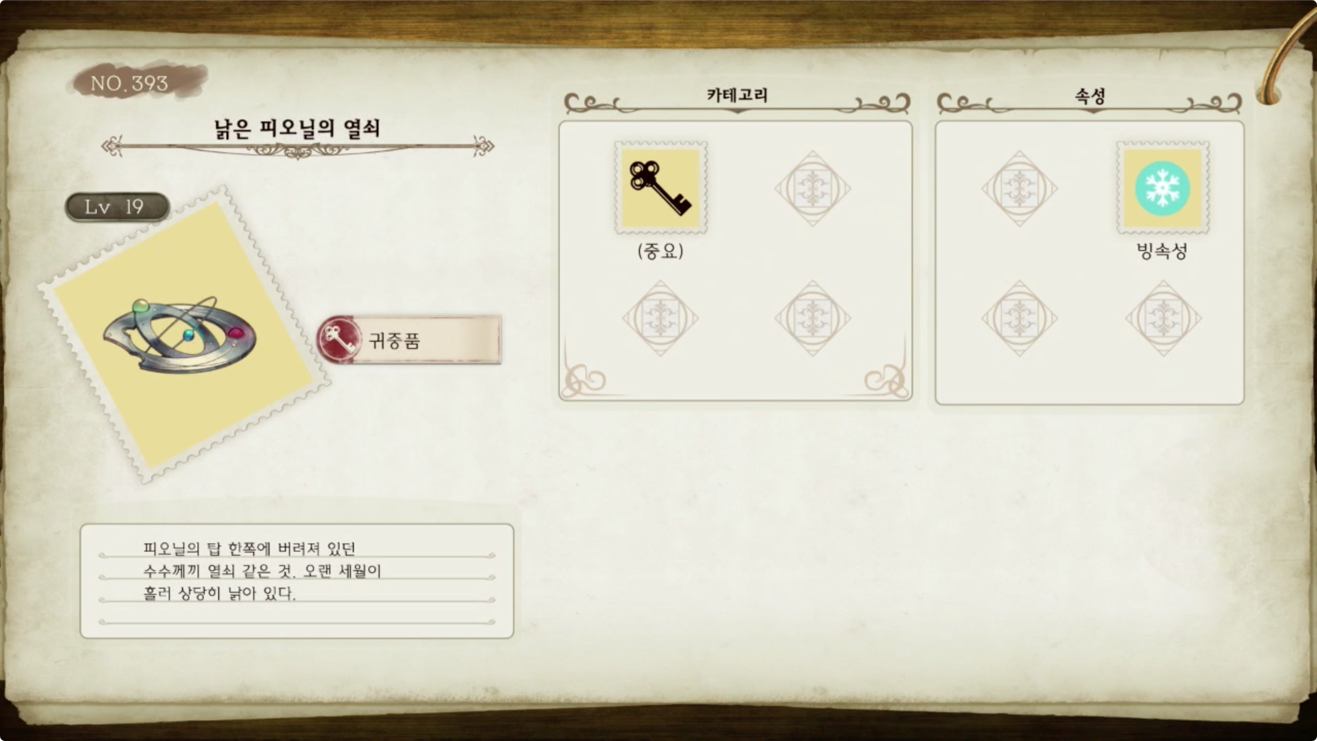 라이자의 아틀리에 - 아이템 도감 NO.393 낡은 피오닐의 열쇠