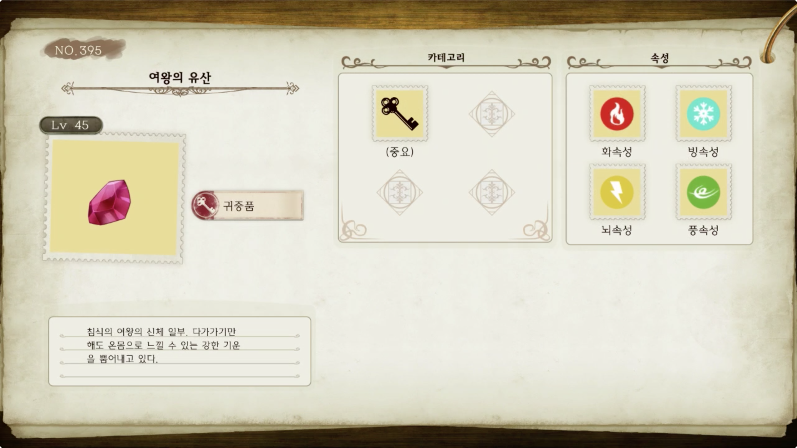 라이자의 아틀리에 - 아이템 도감 NO.395 여왕의 유산