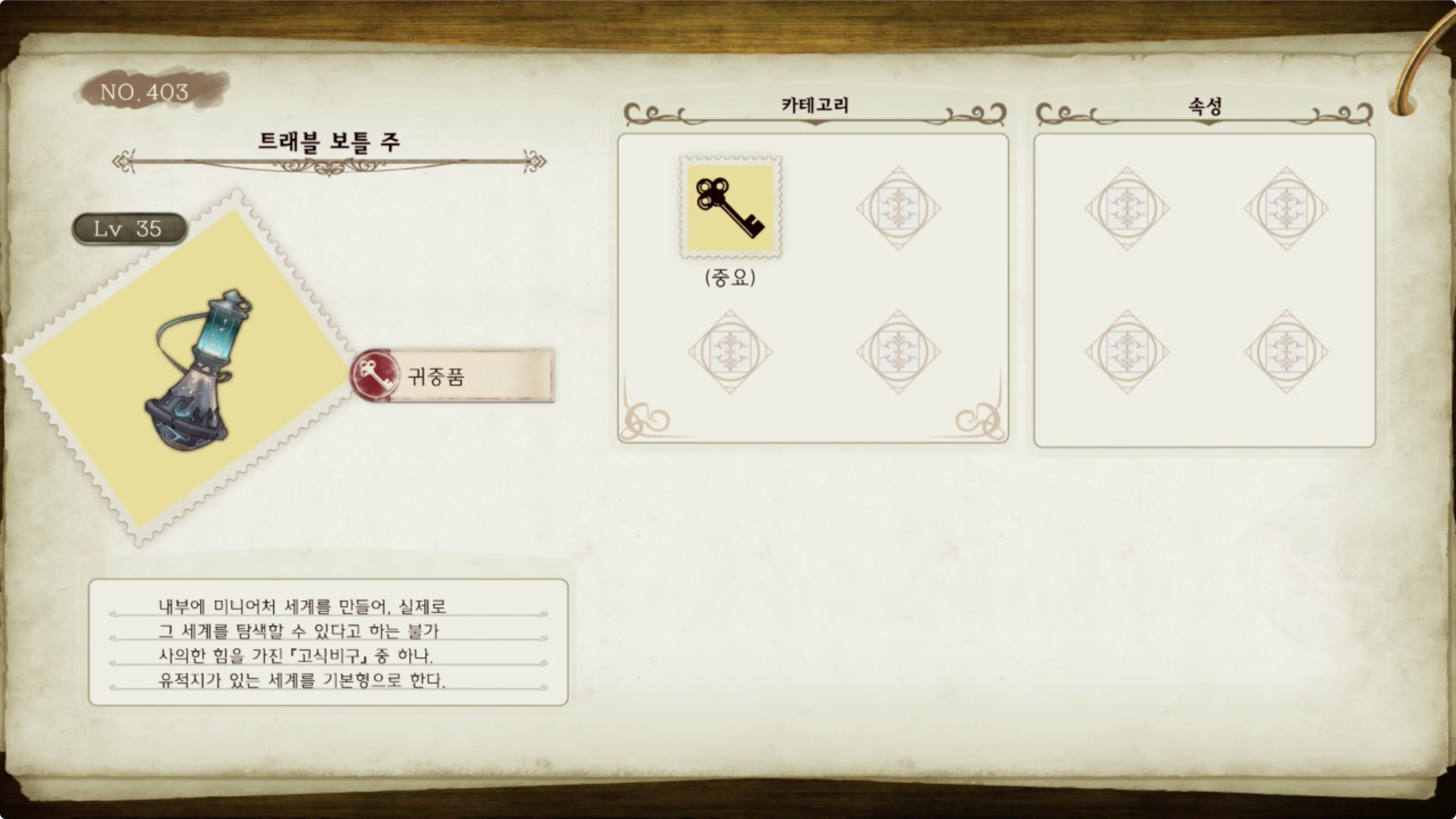 라이자의 아틀리에 - 아이템 도감 NO.403 트래블 보틀 주