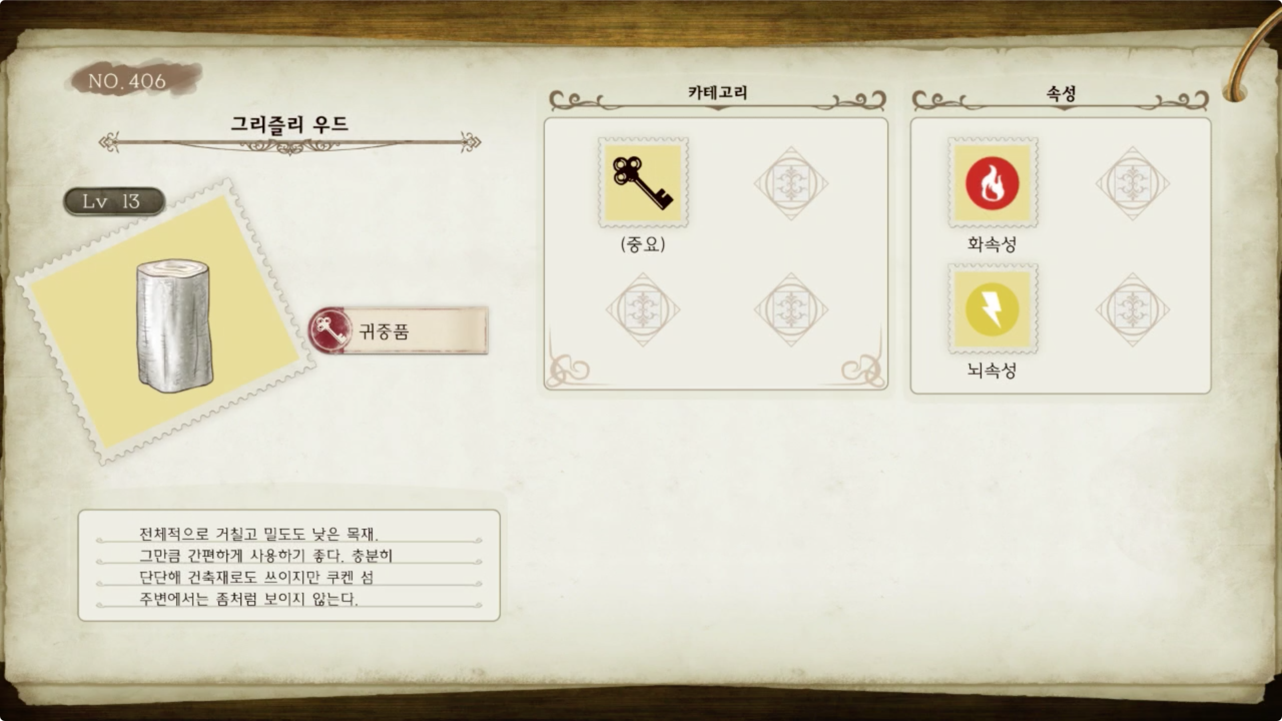 라이자의 아틀리에 - 아이템 도감 NO.406 그리즐리 우드