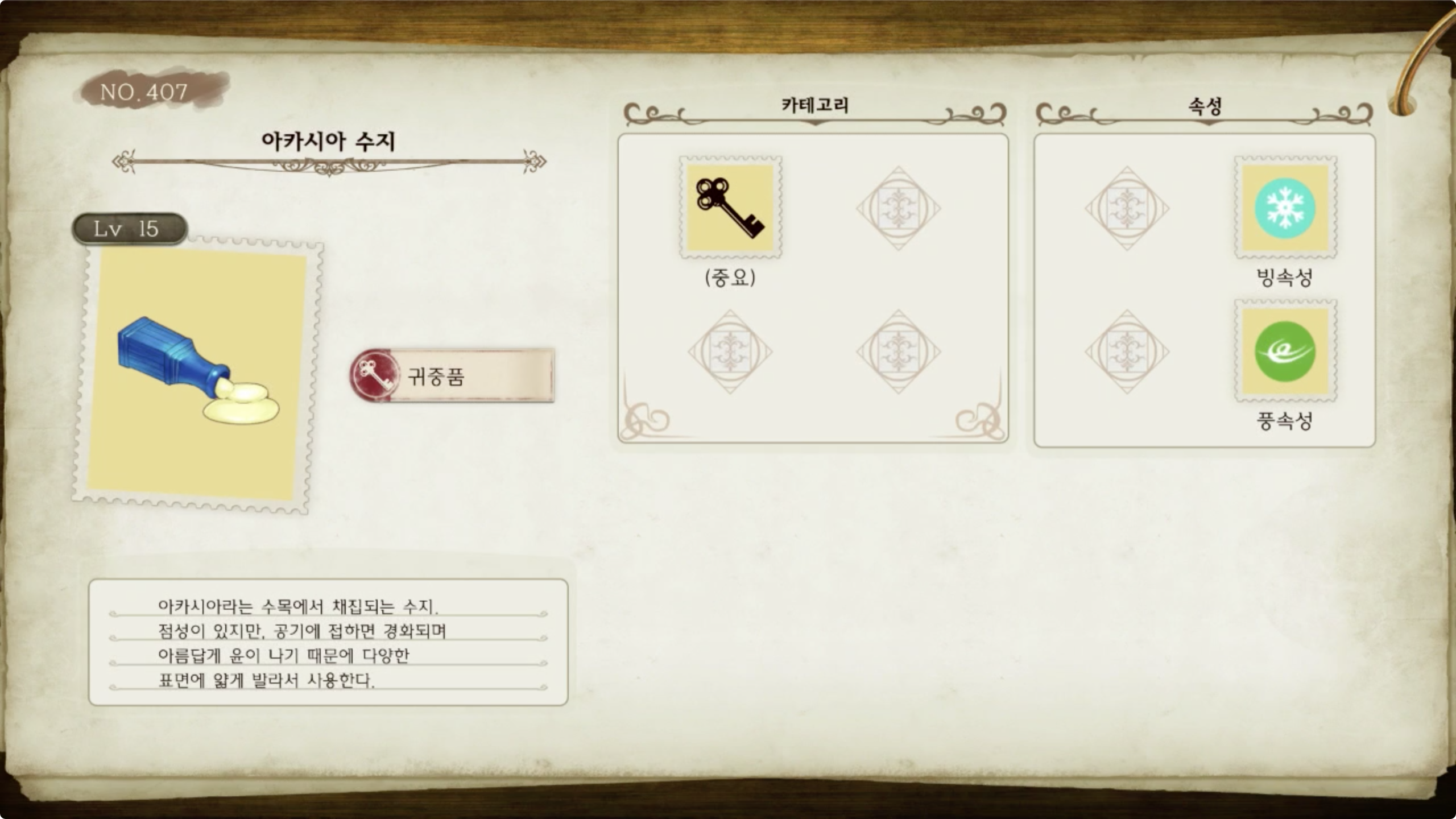 라이자의 아틀리에 - 아이템 도감 NO.407 아카시아 수지