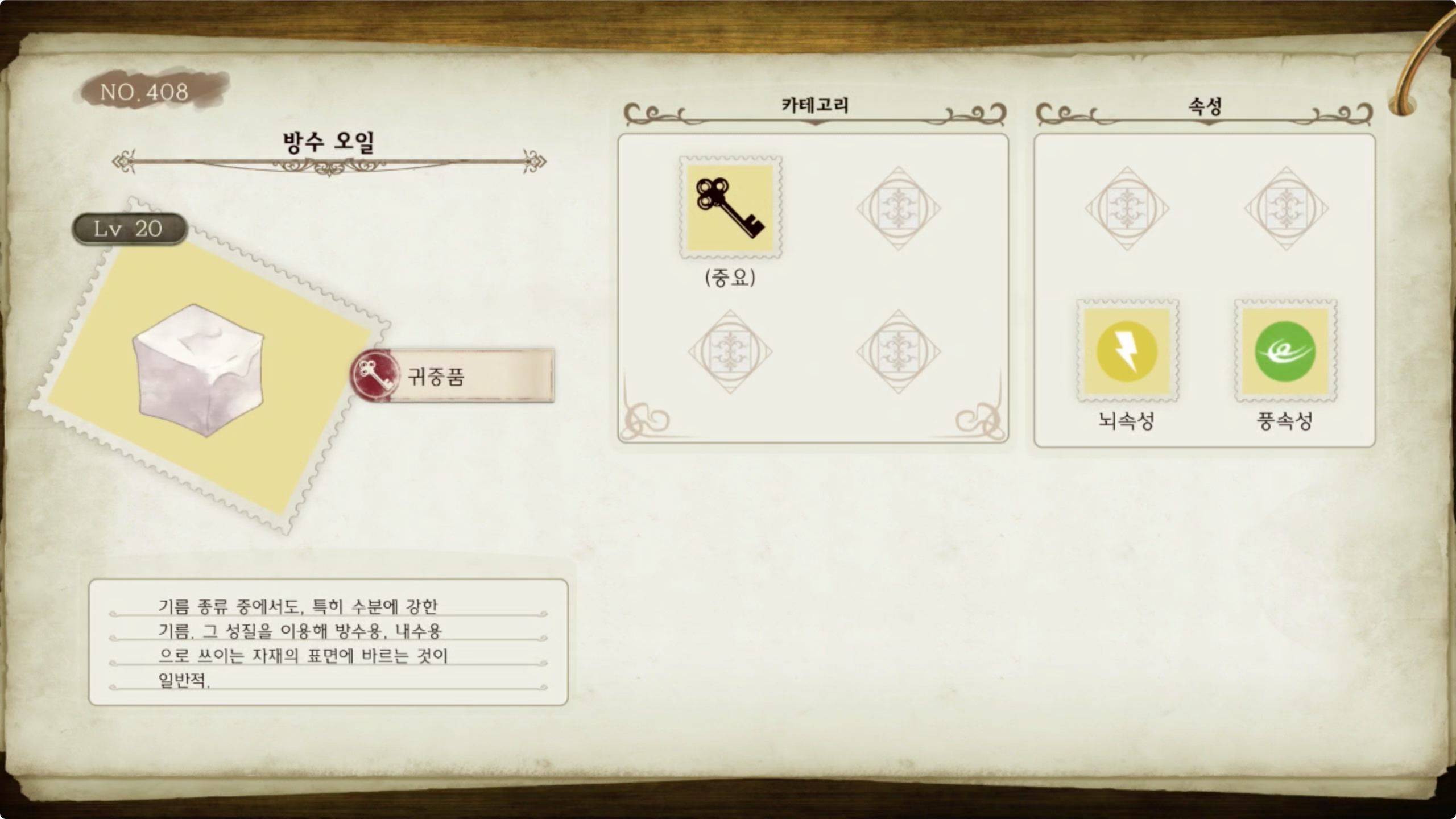 라이자의 아틀리에 - 아이템 도감 NO.408 방수 오일