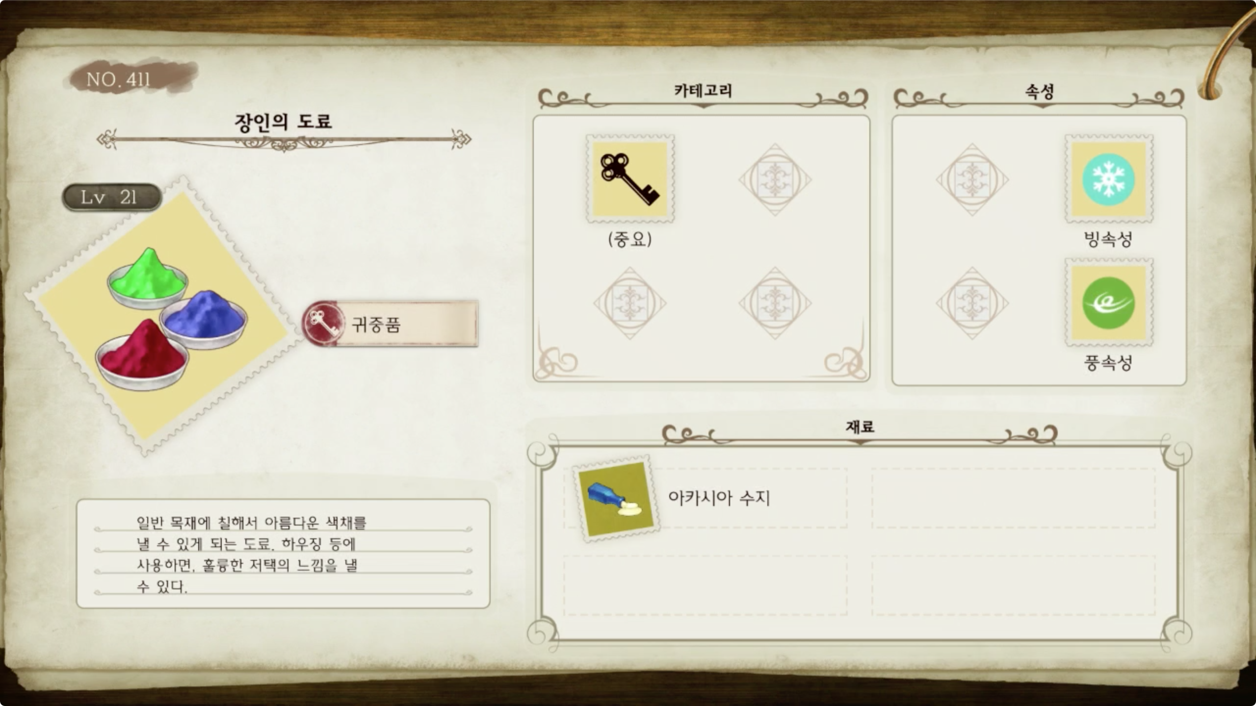 라이자의 아틀리에 - 아이템 도감 NO.411 장인의 도료