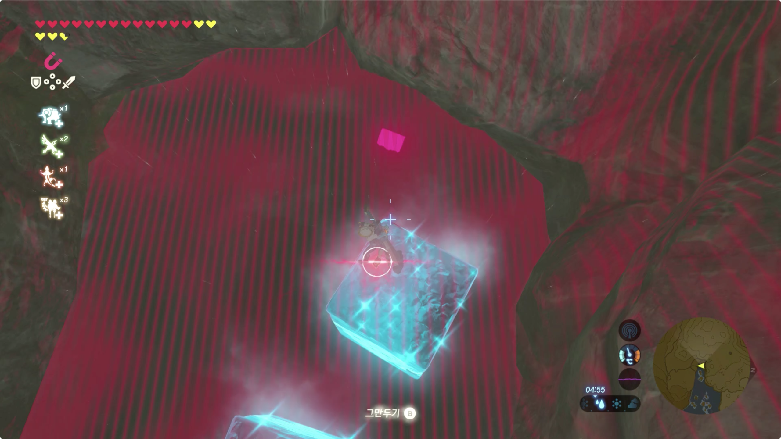 아이스 메이커를 이용해 발판을 만들어 이동한 후 마그넷 캐치로 꺼내줍시다.