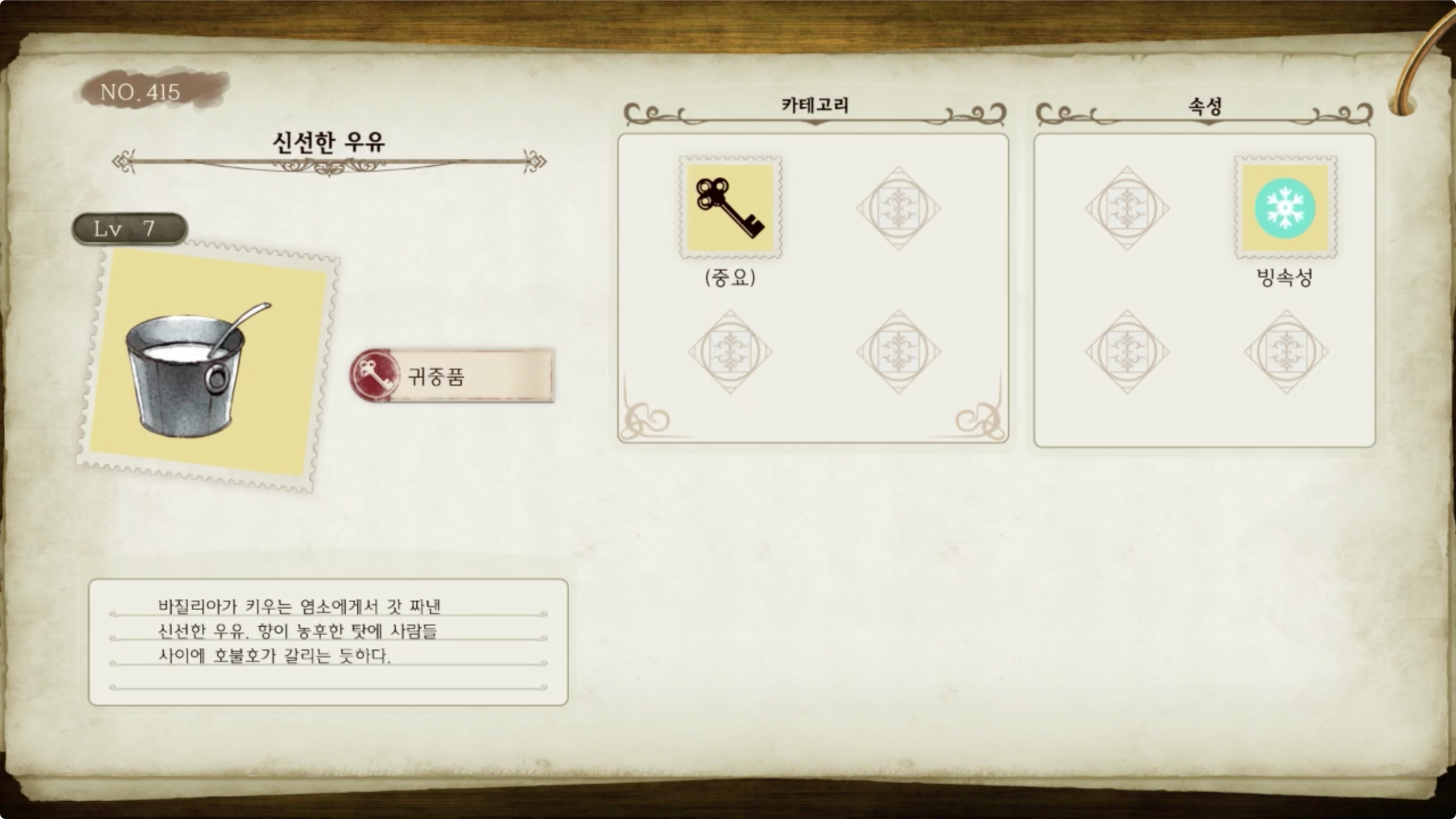 라이자의 아틀리에 - 아이템 도감 NO.415 신선한 우유