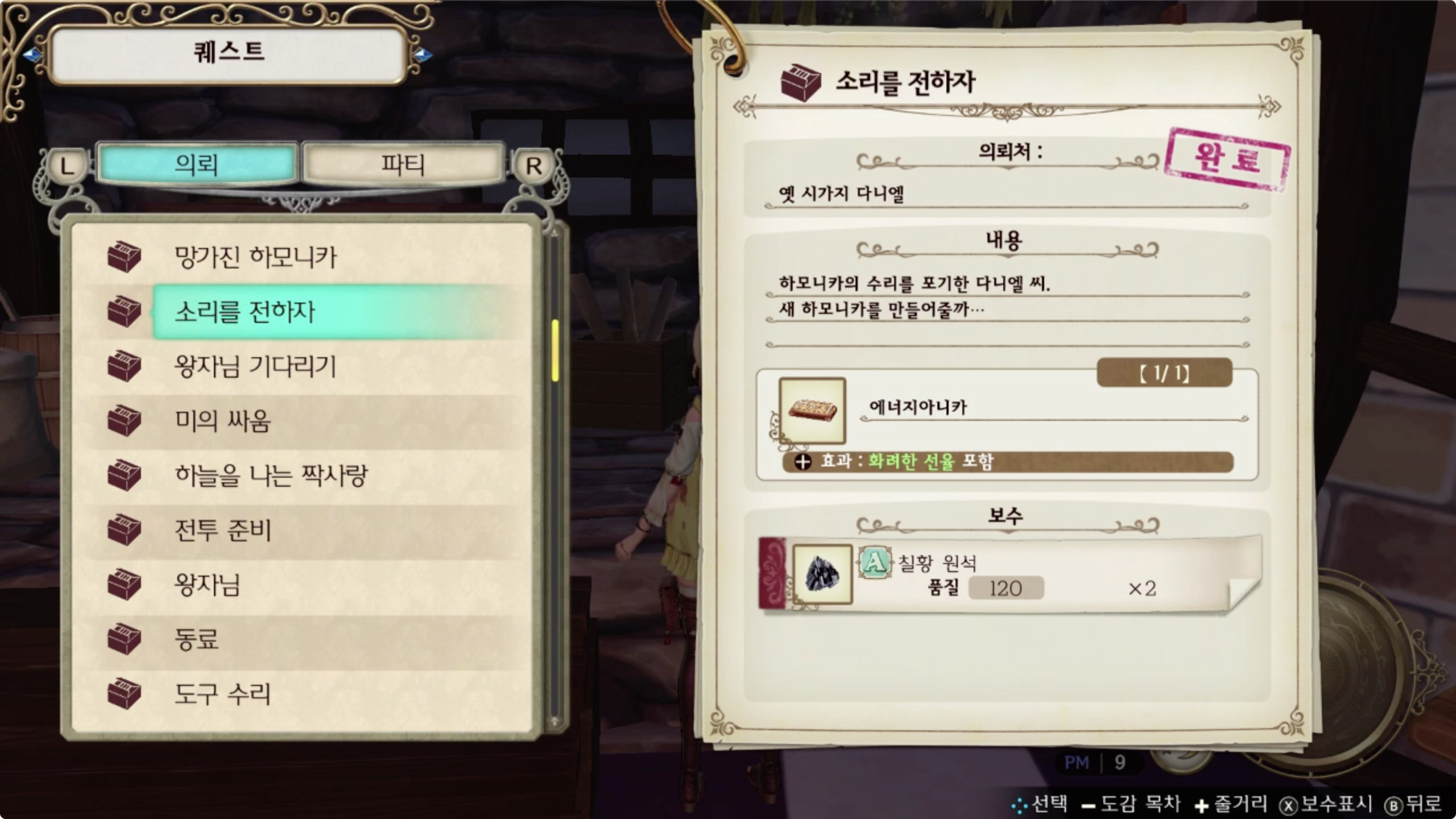 의뢰(서브퀘스트) 등을 진행하다보면 품질이 80 이상의 무언가를 만들어 달라던가 xxxx 효과가 있는 무언가를 만들어 달라는 등의 요구가 있습니다.