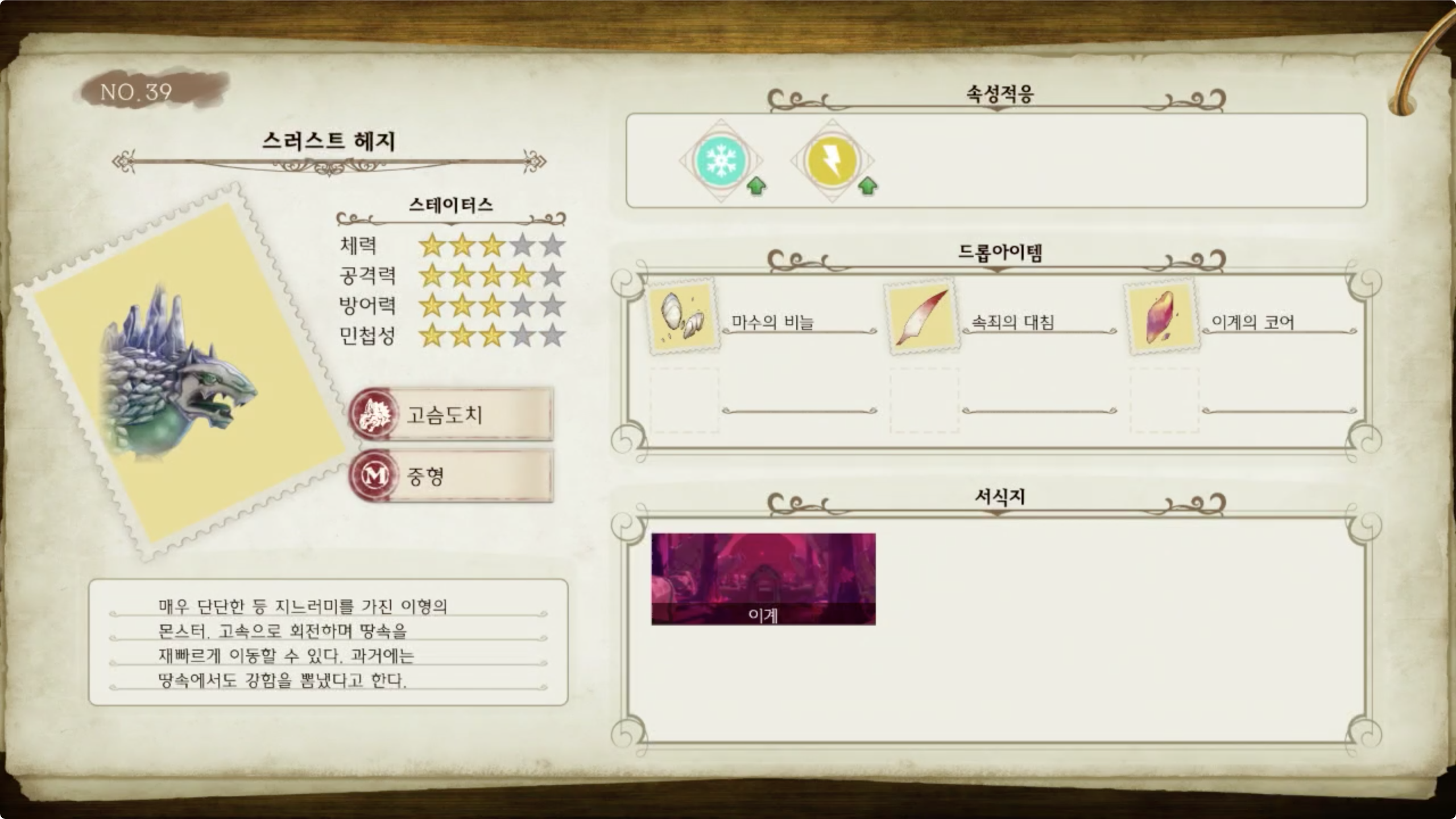 라이자의 아틀리에 - 몬스터 도감 NO.39 스러스트 헤지