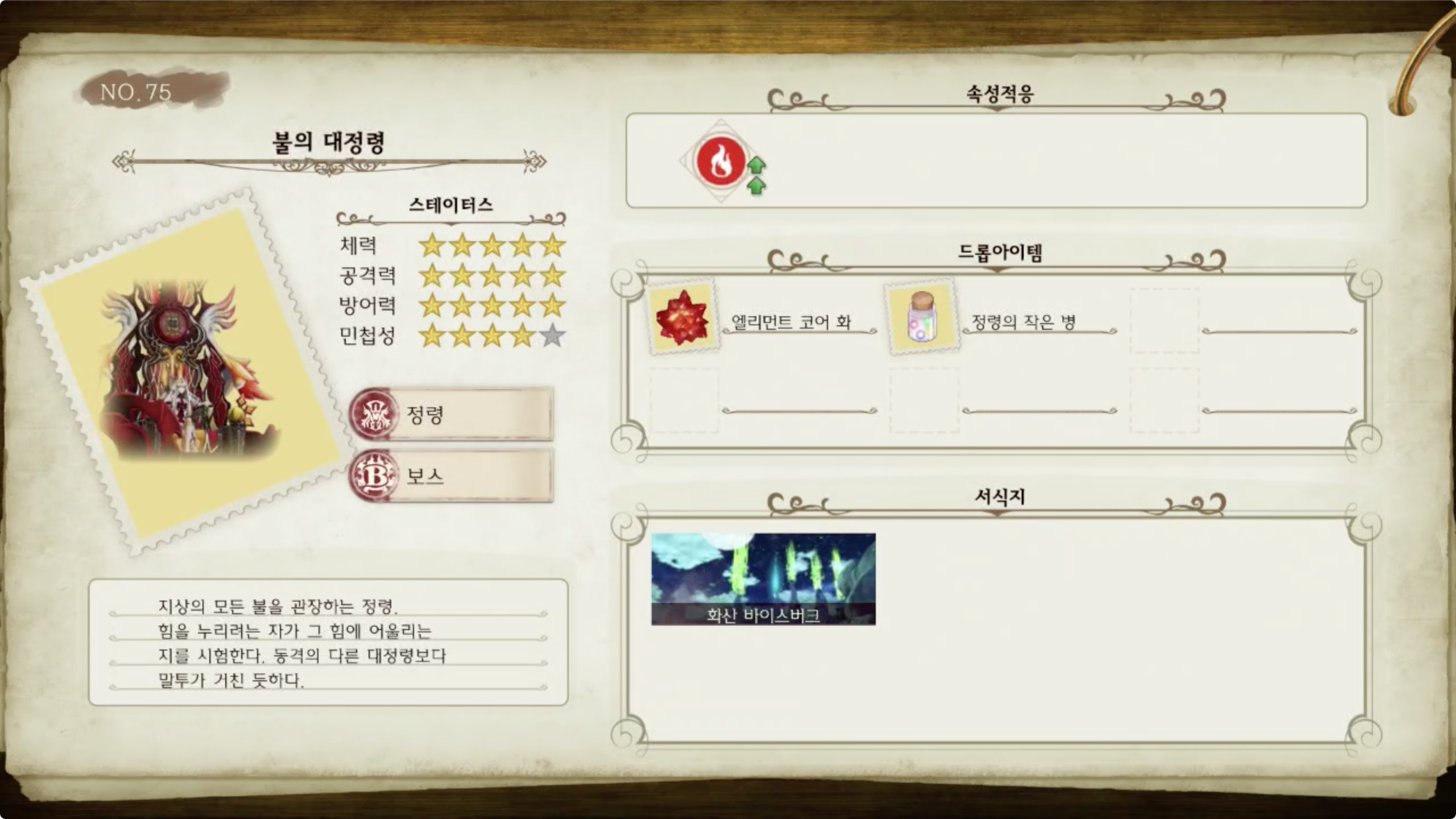 라이자의 아틀리에 - 몬스터 도감 NO.75 불의 대정령