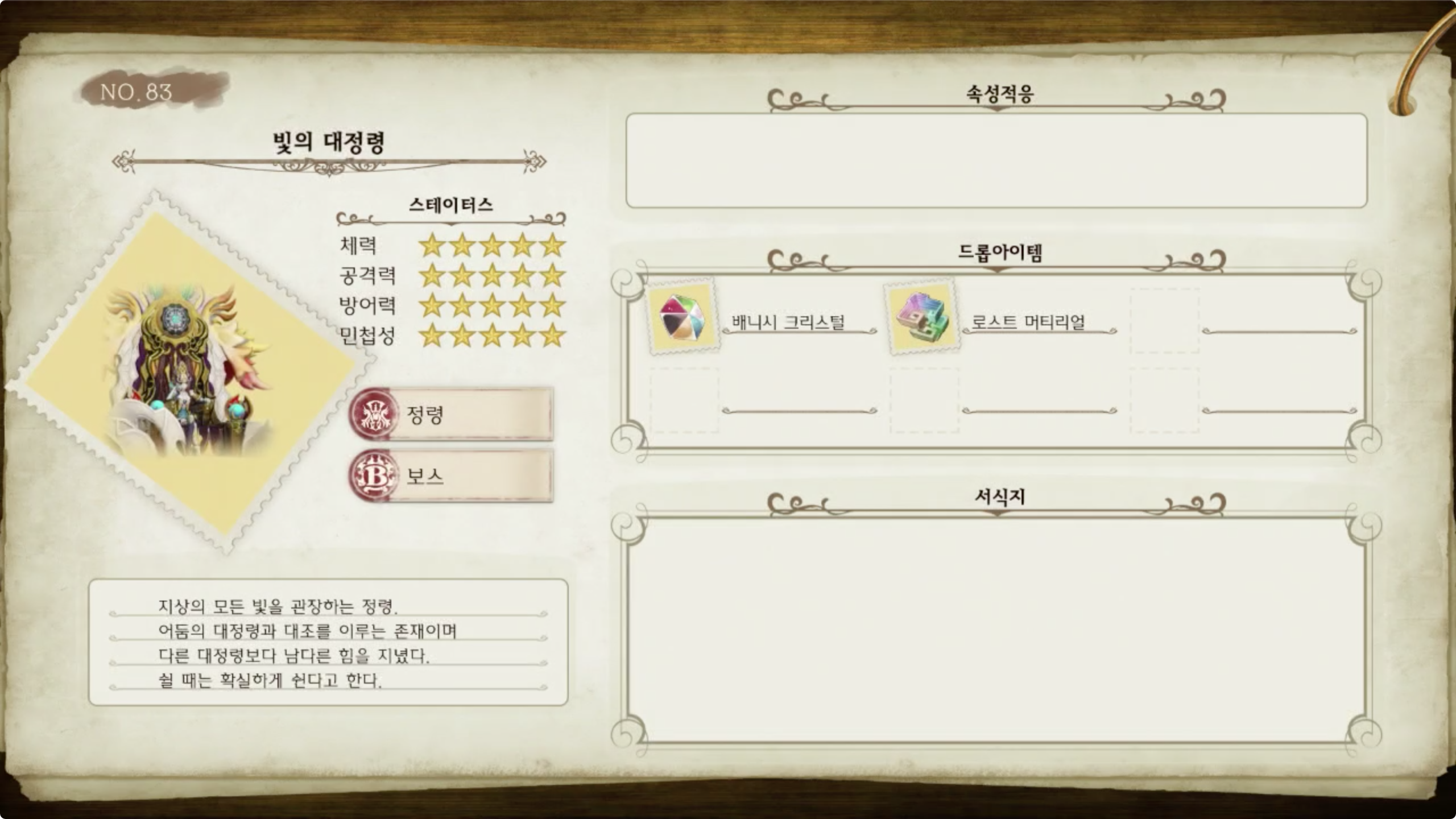 라이자의 아틀리에 - 몬스터 도감 NO.83 빛의 대정령