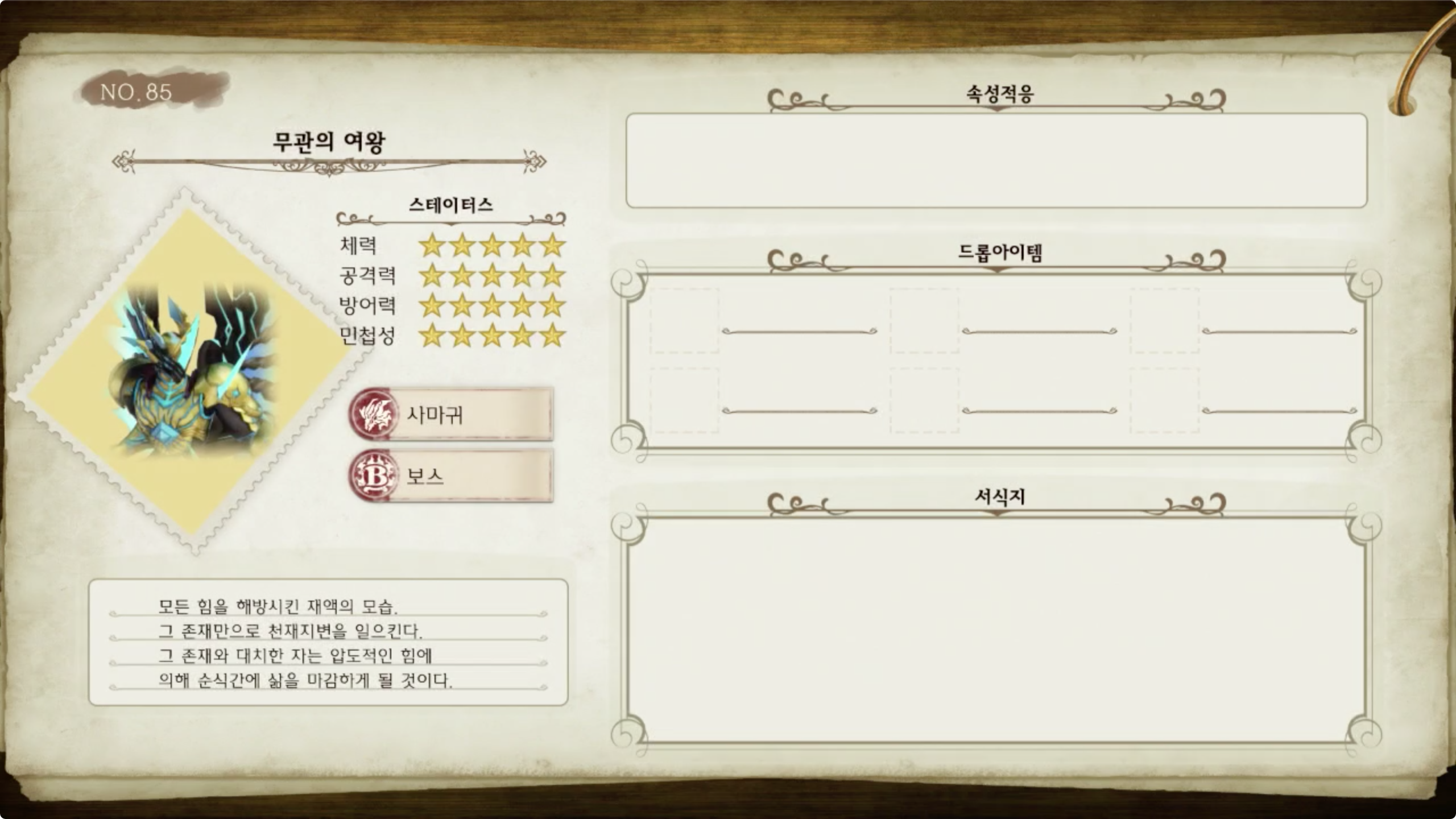 라이자의 아틀리에 - 몬스터 도감 NO.85 무관의 여왕