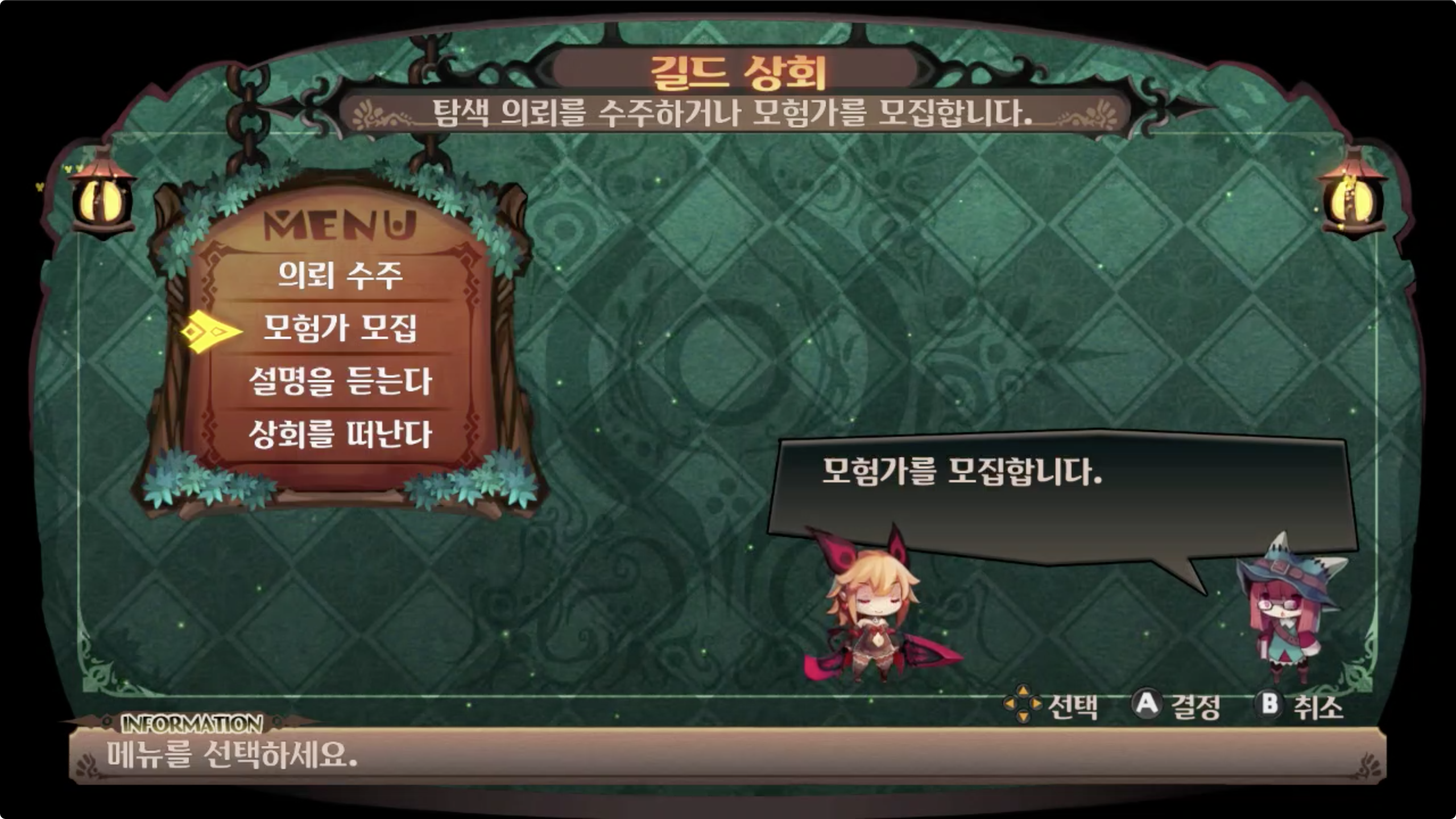 1. 길드 상회에서 의뢰 수주 (타 게임의 스테이지 선택)
