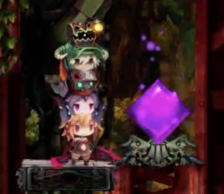 (1) 보라색 오브젝트를 파괴하여 게이트 에너지를 모읍니다.