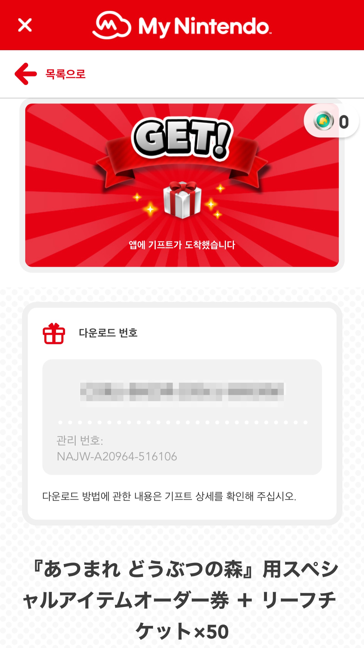 모여봐요 동물의 숲 용 스페셜 아이템 쿠폰 + (포켓 캠프용) 리프 티켓 x50개