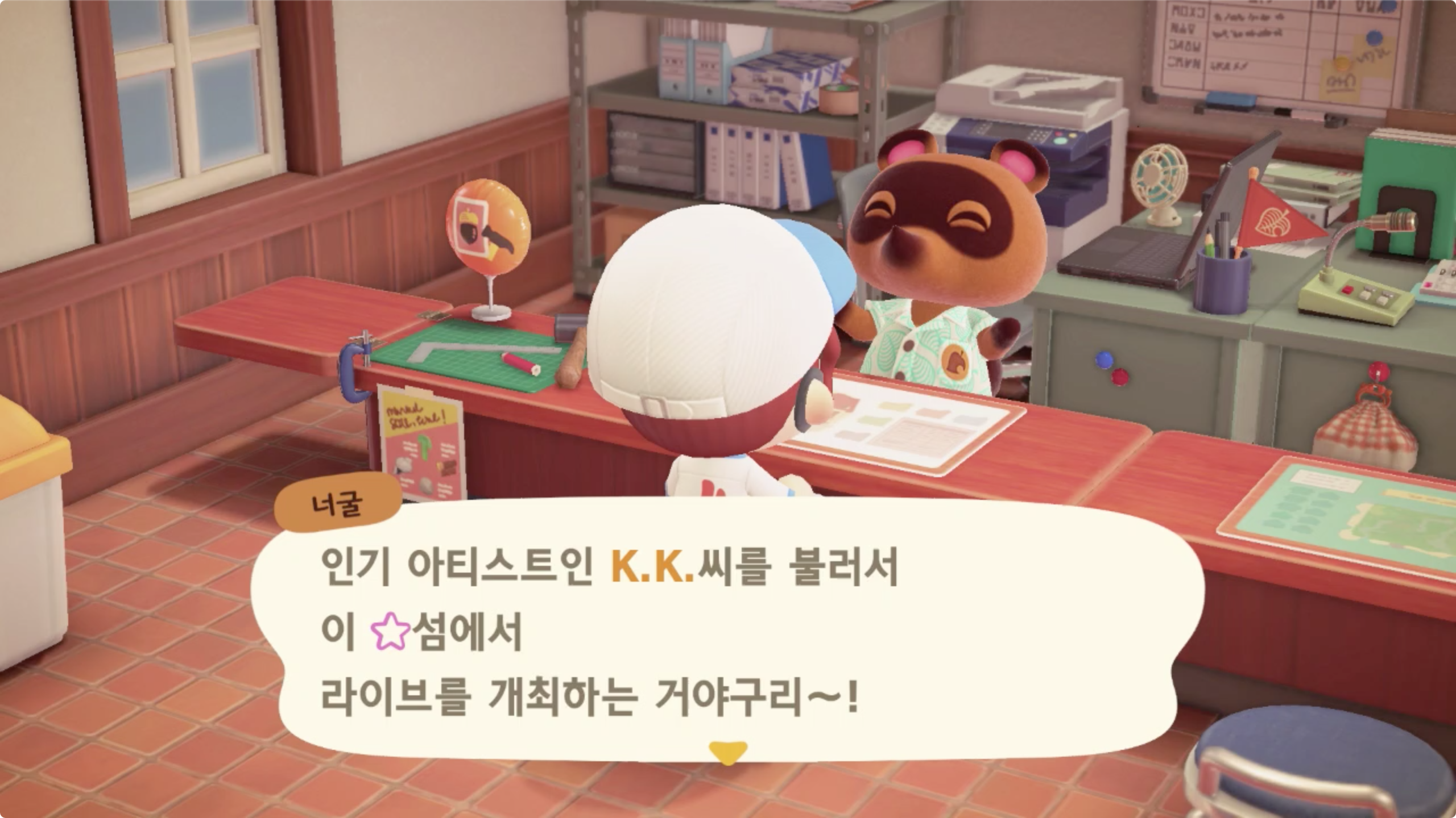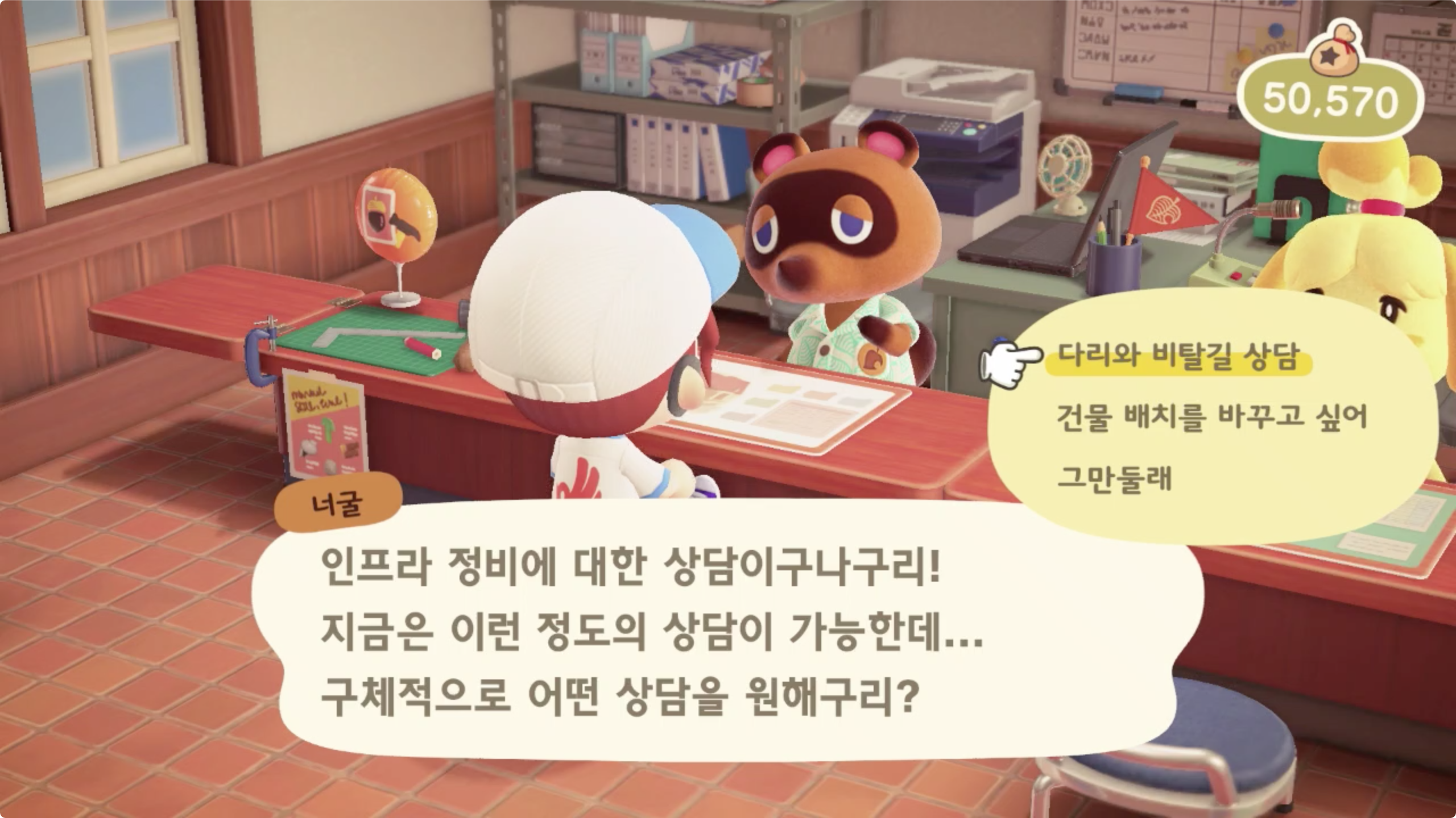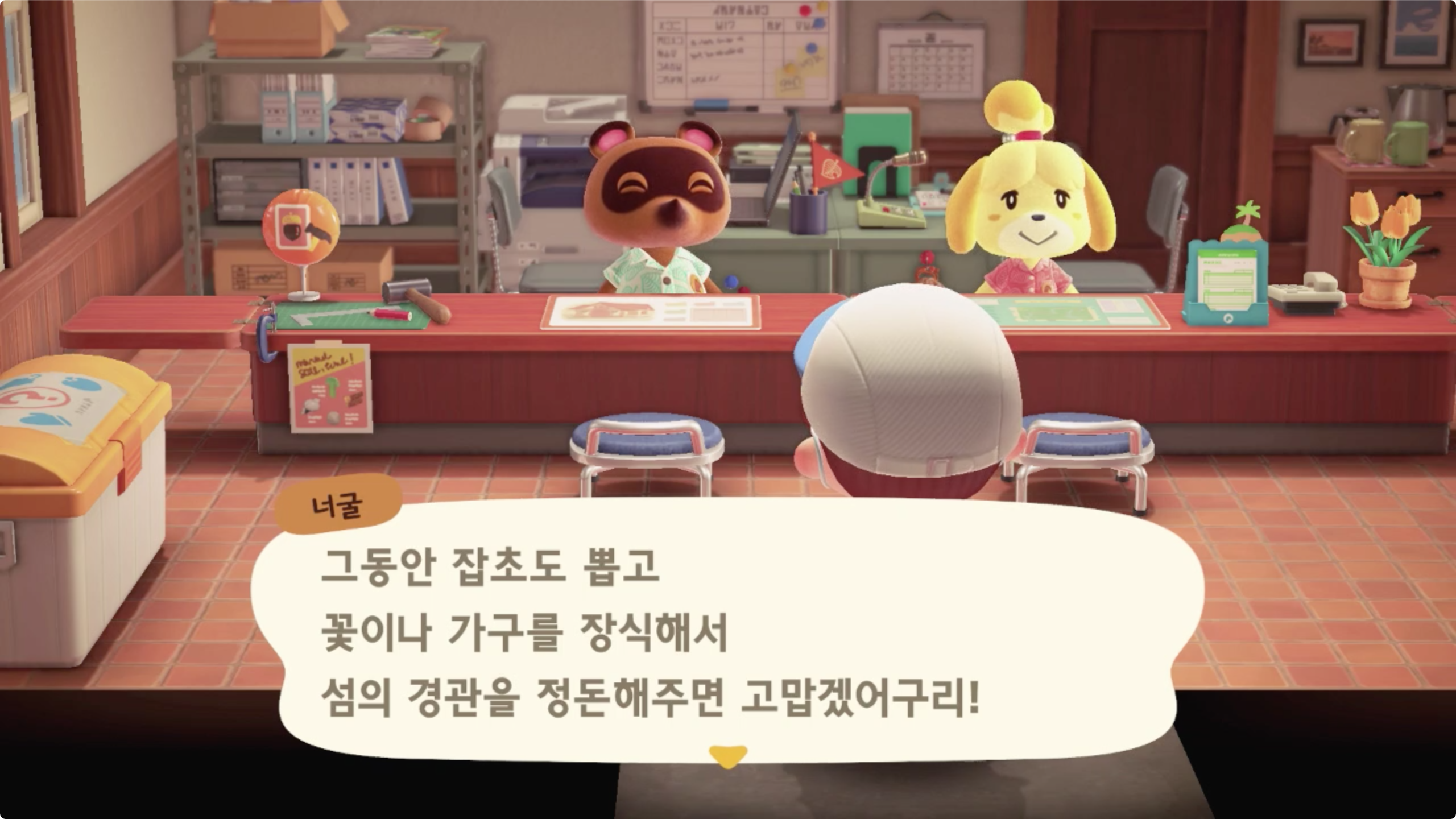 이제 너굴이에게 '뭘 하면 될까?' 로 대화를 걸면 다음 이벤트가 진행된다.