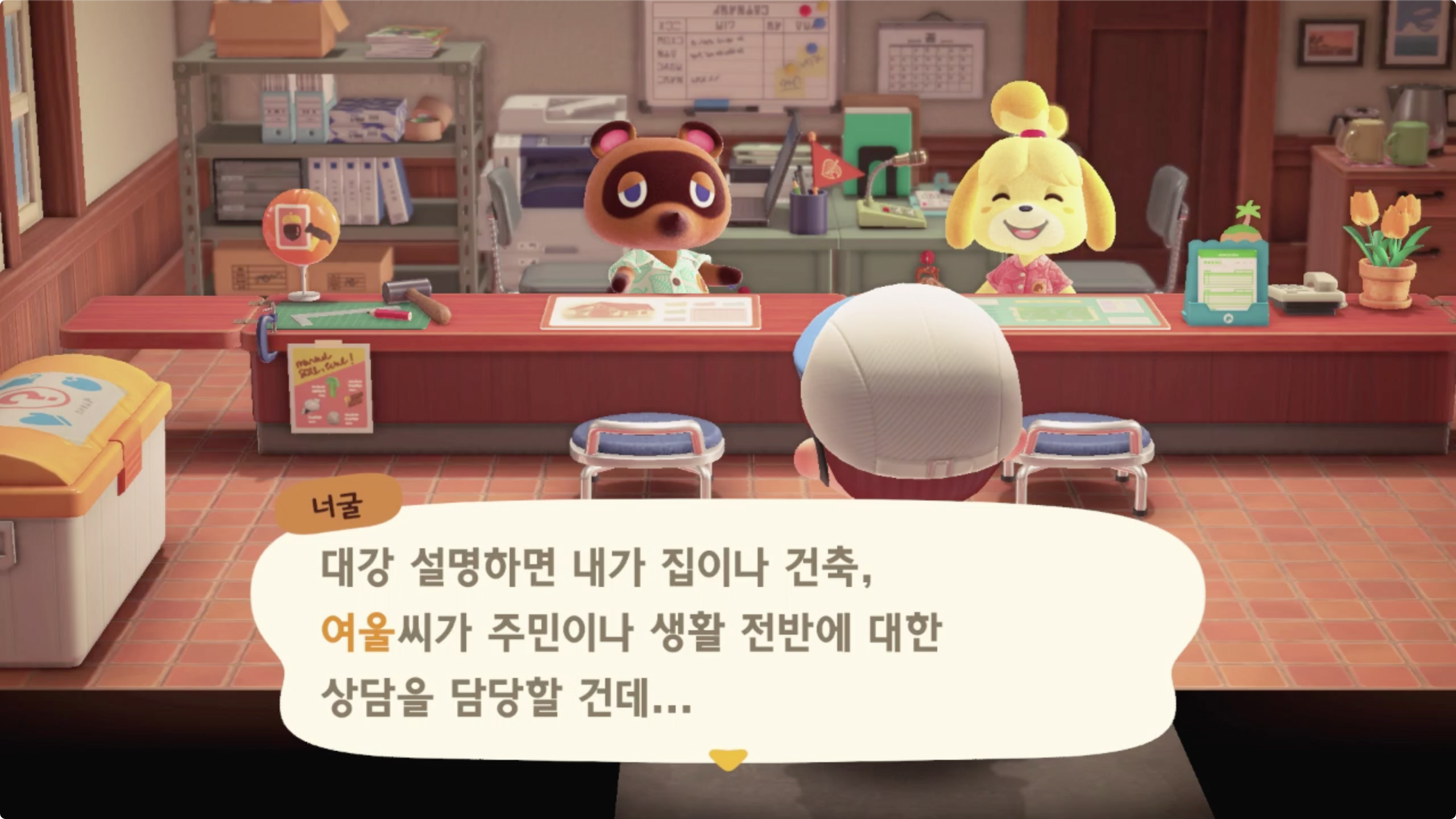 타 게임과의 큰 디테일한 차이가 이러한건데 집이나 건축은 너굴이 앞의 의자에 앉으면 되고,