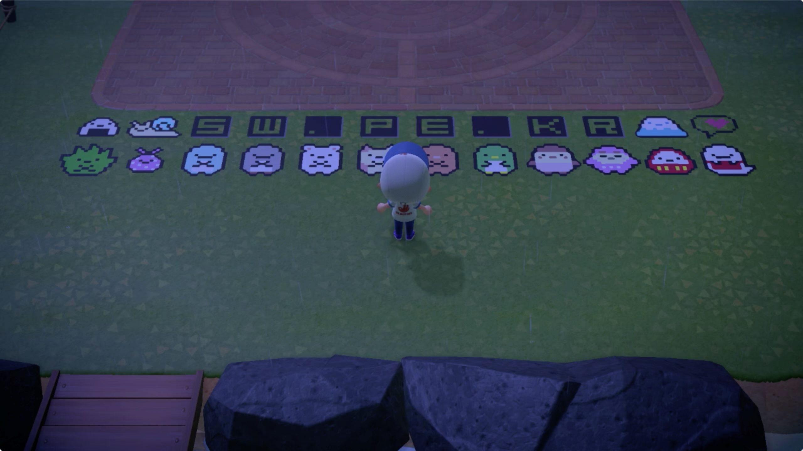 섬을 방문하는 손님들을 위한 캠핑장을 만들자면서 너굴이가 캠핑장 건축예정지 키트를 준다.