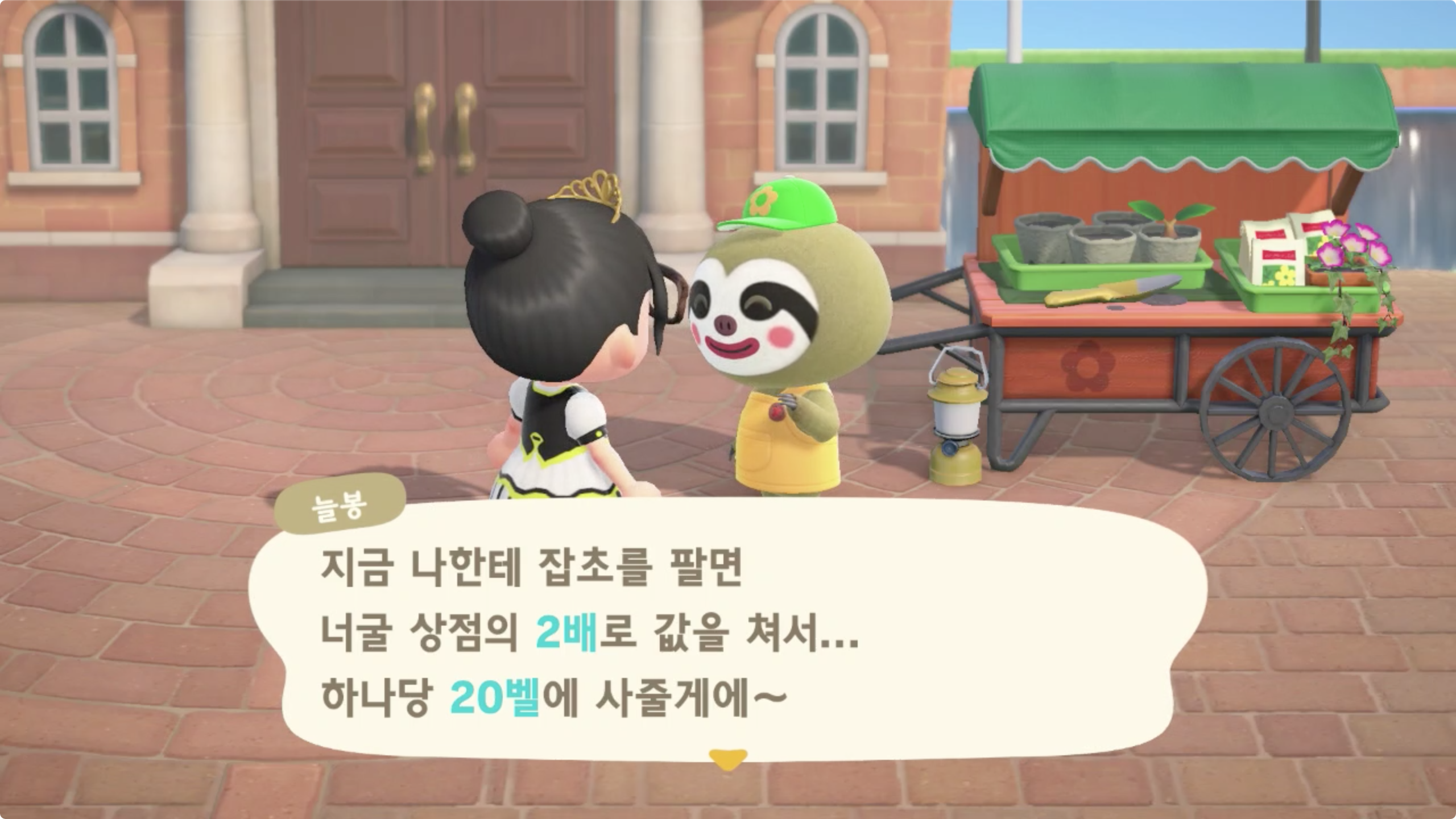 또한 잡초를 너굴 상점의 2배 가격인 개당 20벨에 매입해 줍니다.