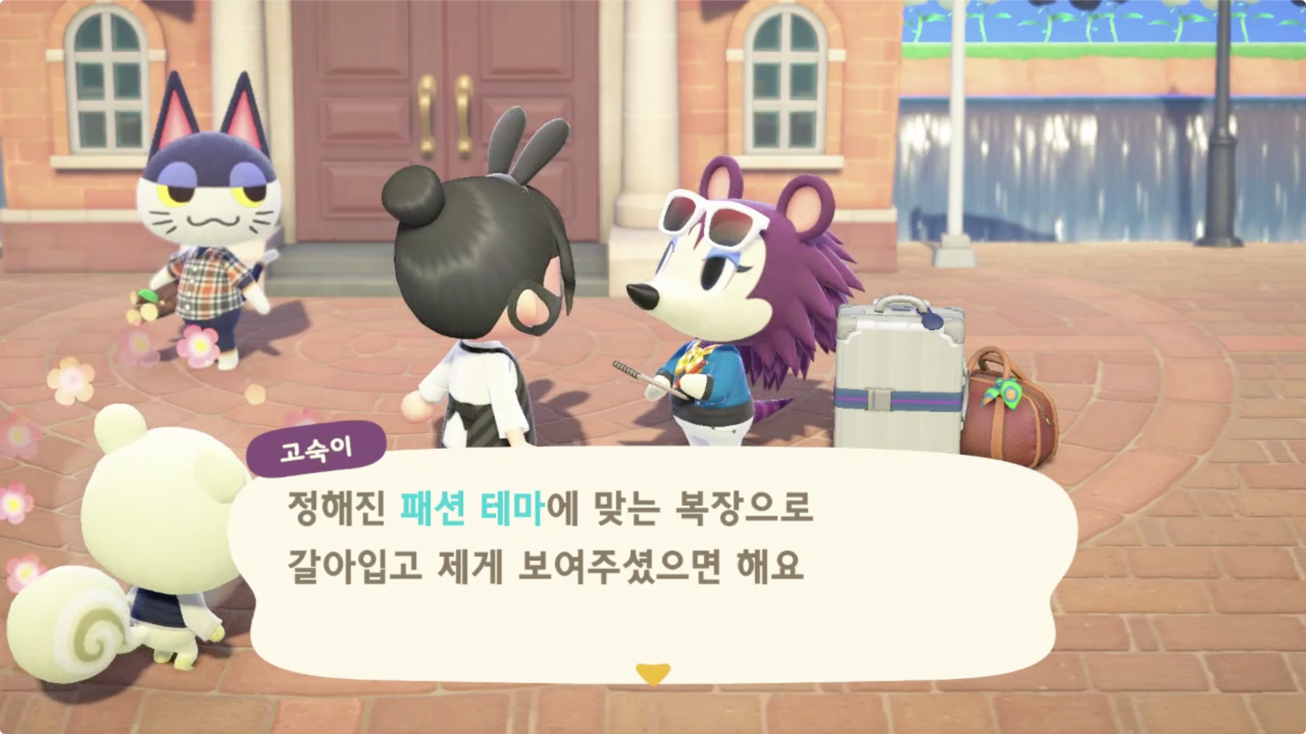 고숙이가 정해주는 패션 테마에 맞춘 복장으로 갈아입고 고숙이에게 보여주면 되는것으로 요구하는 내용은 간단하다.