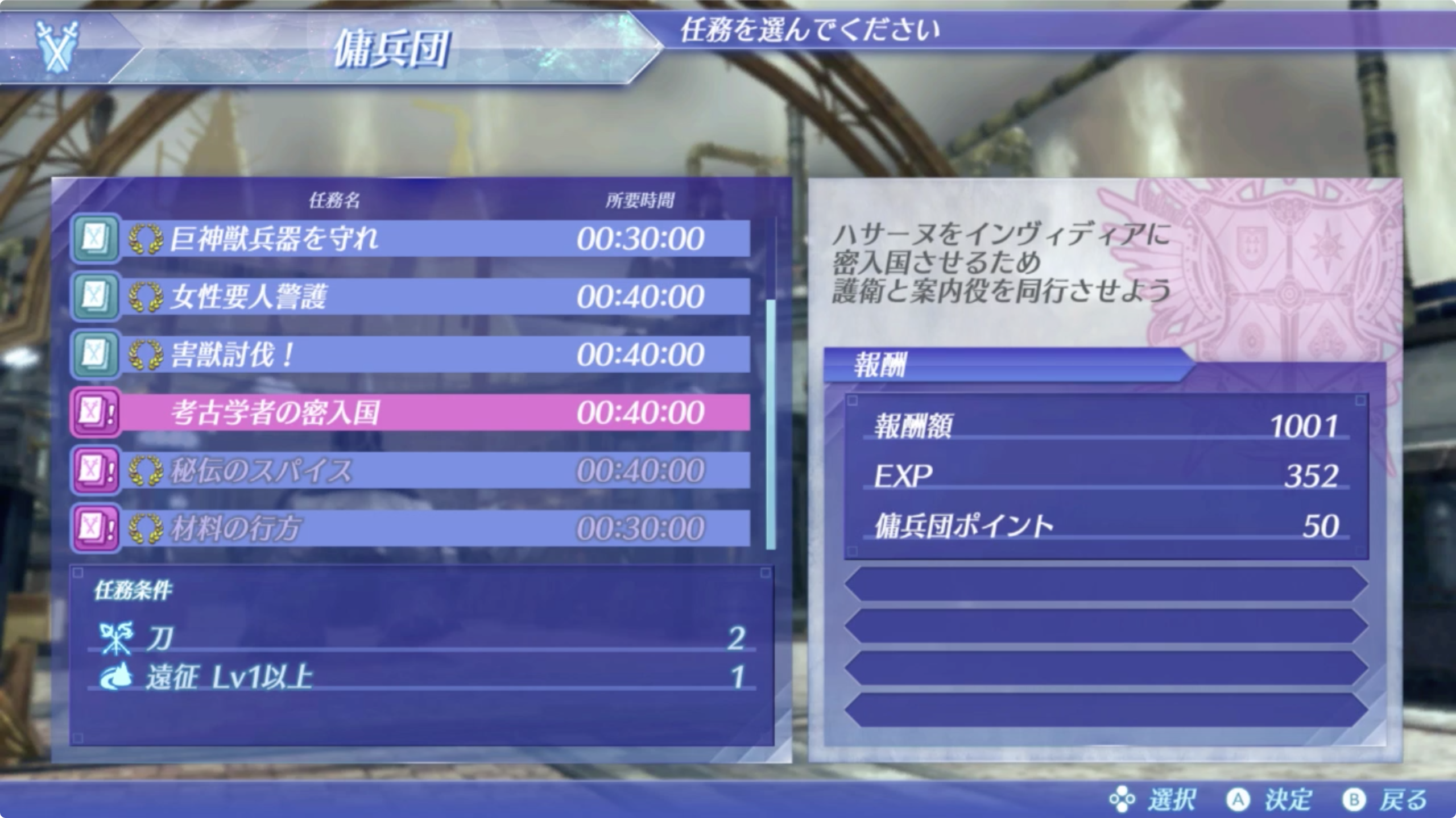 02. 용병단(傭兵団) 임무, 스펠비아의 고고학자의 밀입국(考古学者の密入国)을 완료한다.