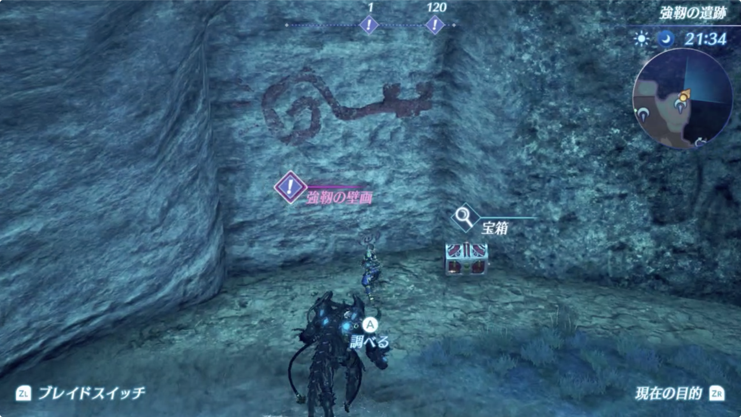 04-2. 인비디아(インヴィディア)・강인의유적(強靭の遺跡)에서 다양한 시간대(낮과 밤)에 벽화를 조사하여, 차이가 없는지 확인하자.