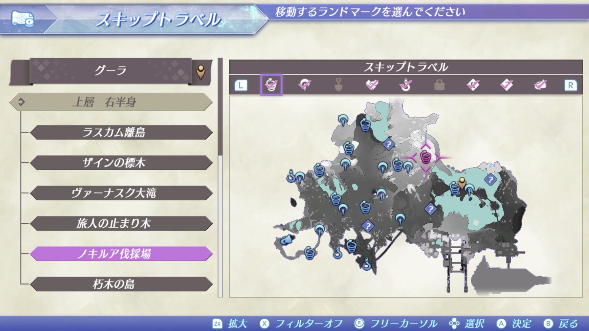01. 구우라(グーラ) > 상층 우반신(上層 右半身) > 노키루아 벌목장(ノキルア伐採場)으로 이동합니다.