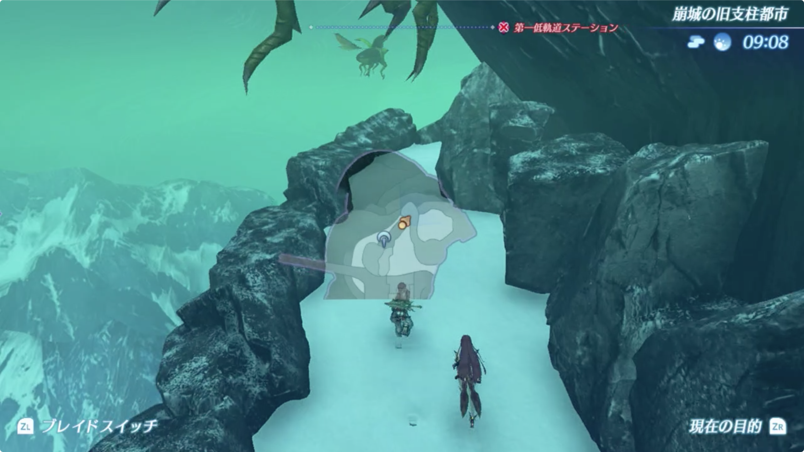 쓰러트리고 바깥으로 나가게 되면 무너진 얼음다리(崩落した氷結橋)에서 필드스킬을 이용해 길을 만들 수 있다.