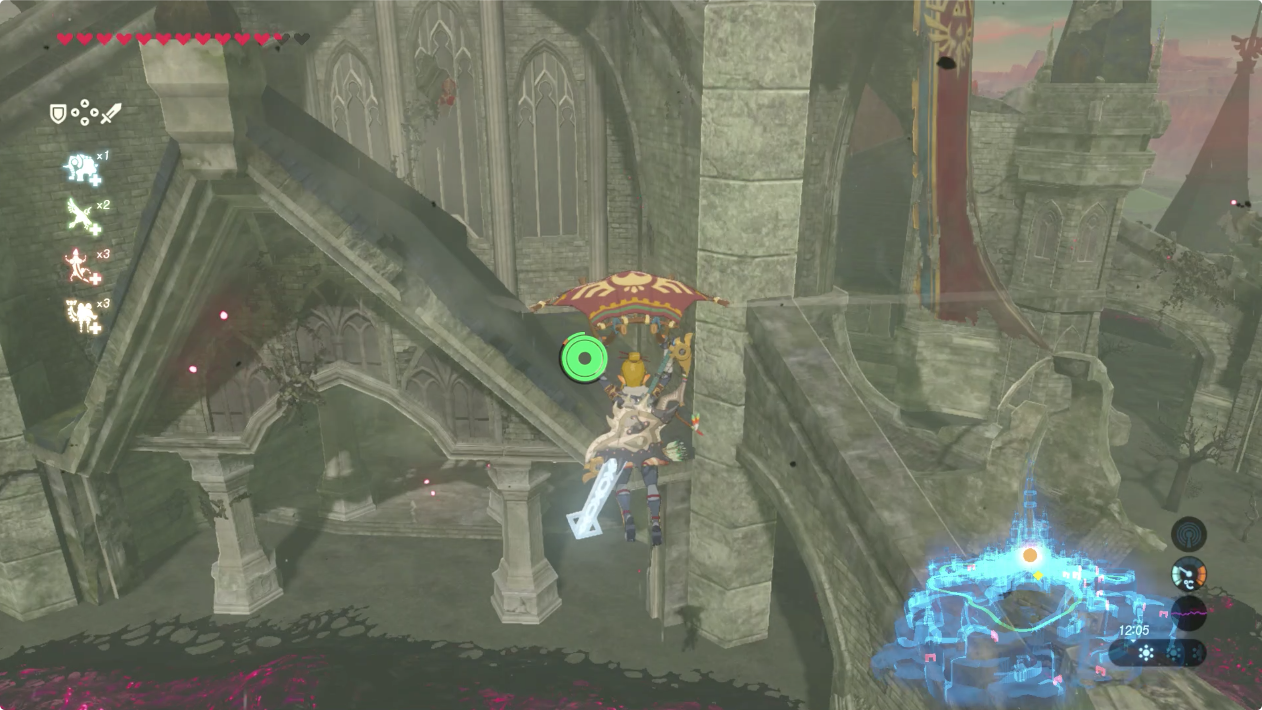 이제 꼭대기에서 잠시 기다렸다가 다시 상승기류를 타고 하이랄 성 내부로 진입하자.