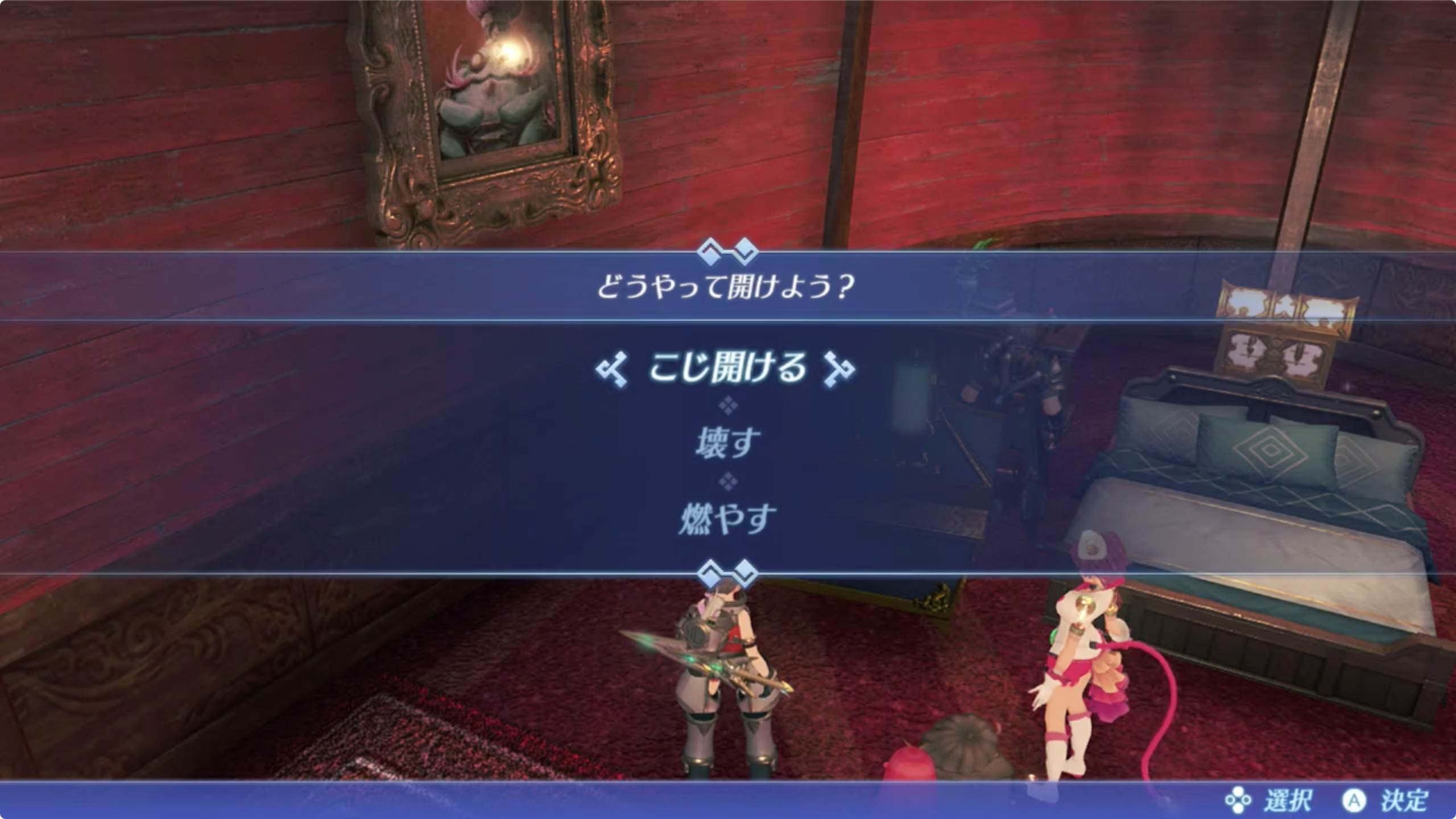 선택지 : 억지로 열기(こじ開ける) 선택. - 열기(開錠)Lv4, 고대문명의 지식(古代文明の知識)Lv2 필요.