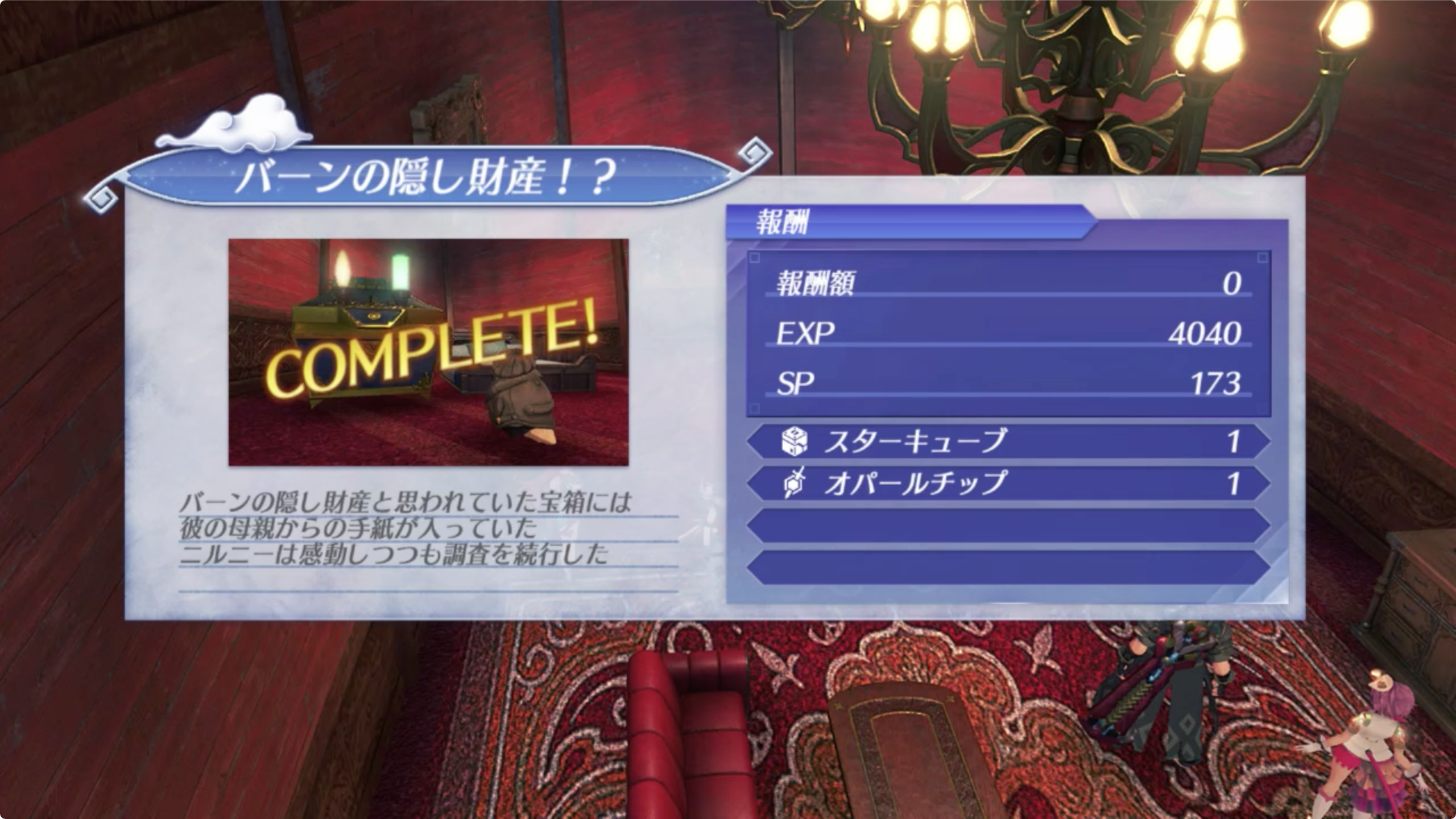 보물상자를 조사하기 위해선 열기(開錠)Lv4, 고대문명의 지식(古代文明の知識)Lv3이 필요하다.