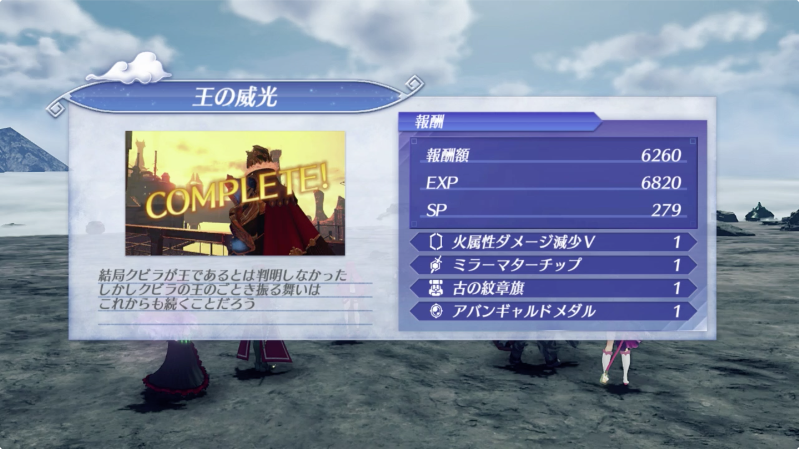 보상 아이템 : 화속성데미지감소V(火属性ダメージ減少V), 미러마타 칩(ミラーマターチップ), 오래된 문장기(古の紋章旗), 아방가르드 메달(アバンギャルドメダル)