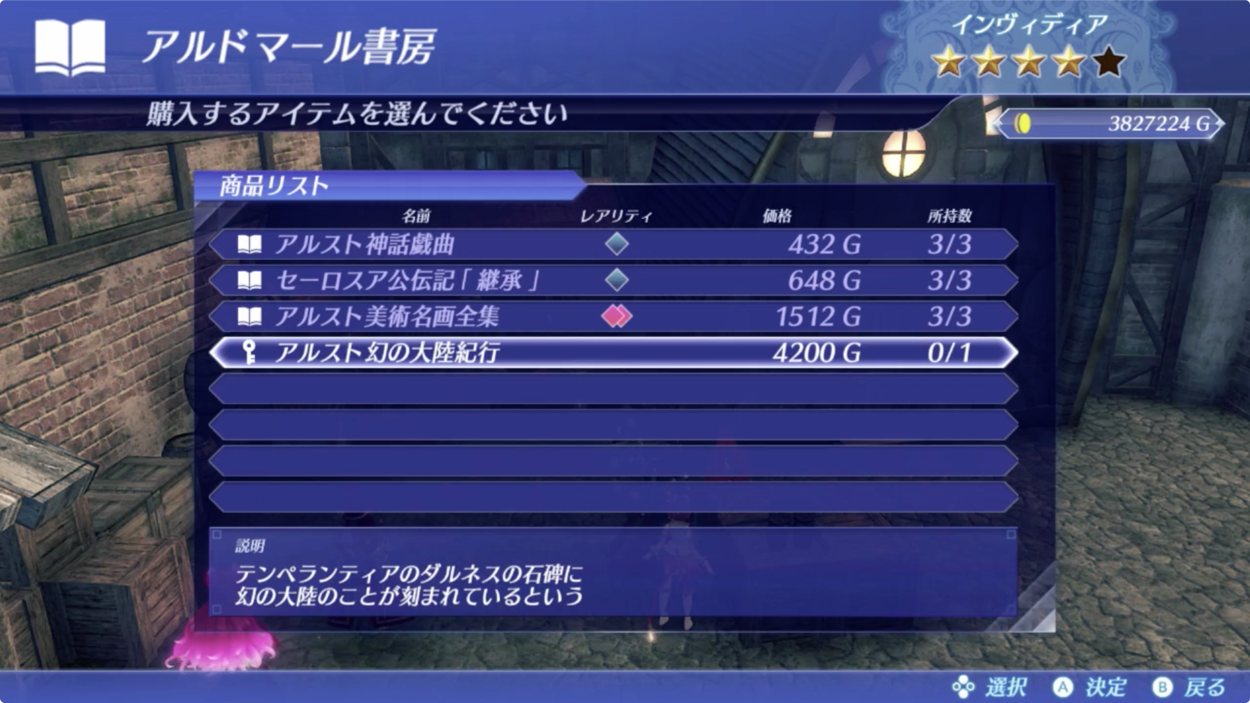 수도 폰스마임의 상업구역에 있는 아르도마르 서점(アルドマール書房)에서 알스트 환상의 대략기행(アルスト幻の大陸紀行)을 구입하자.
