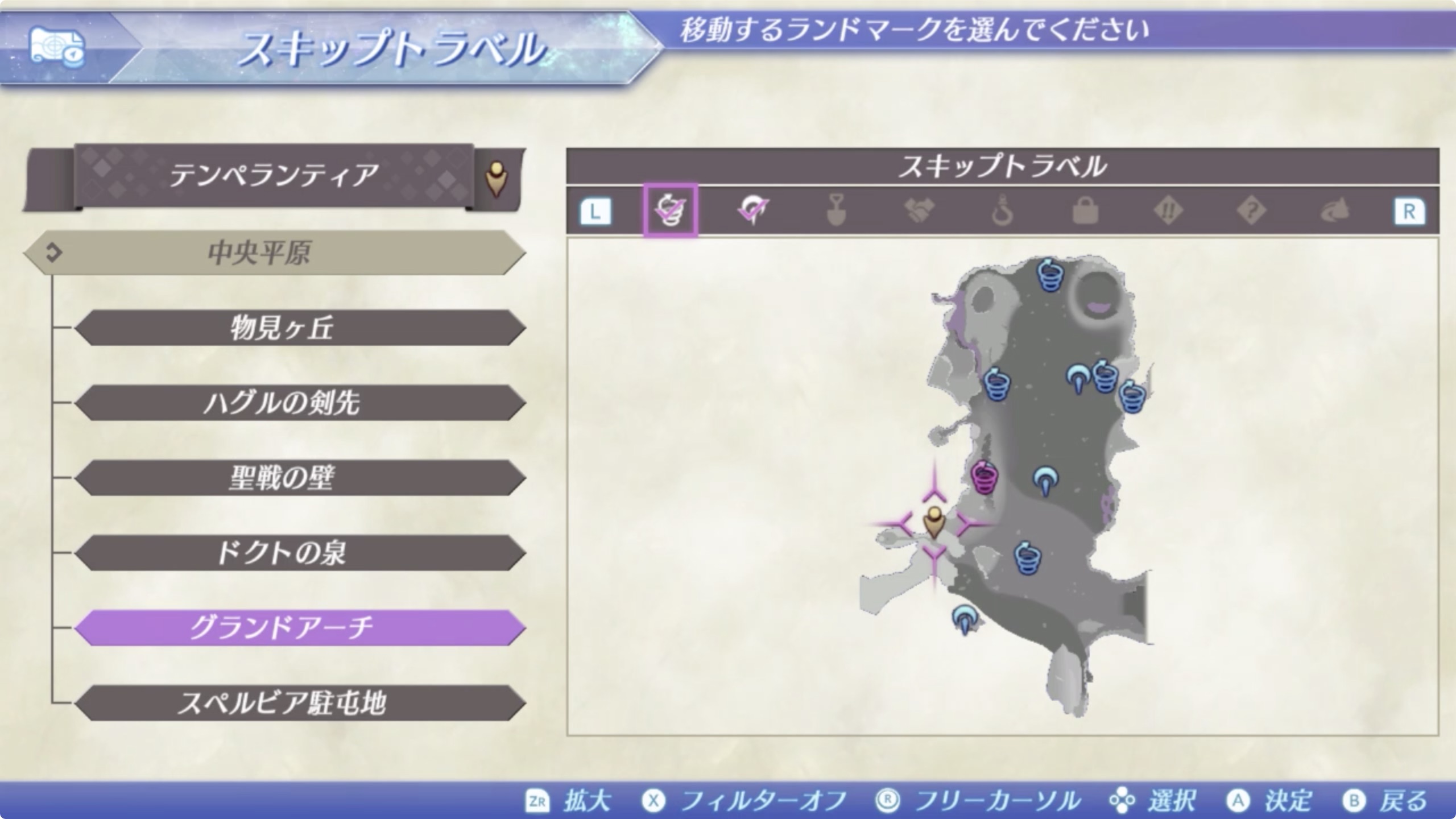 ① 템페란티아(テンペランティア) > 중앙평야(中央平原) > 그랜드 아치(グランドアーチ)에서 남서쪽.